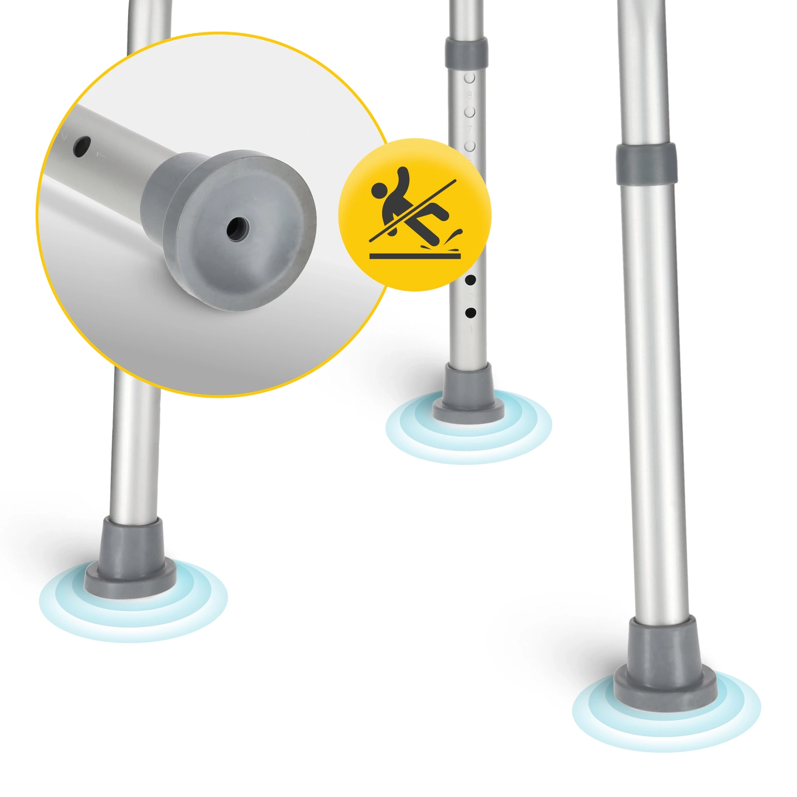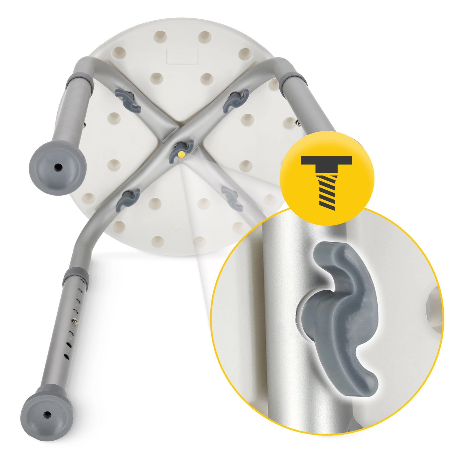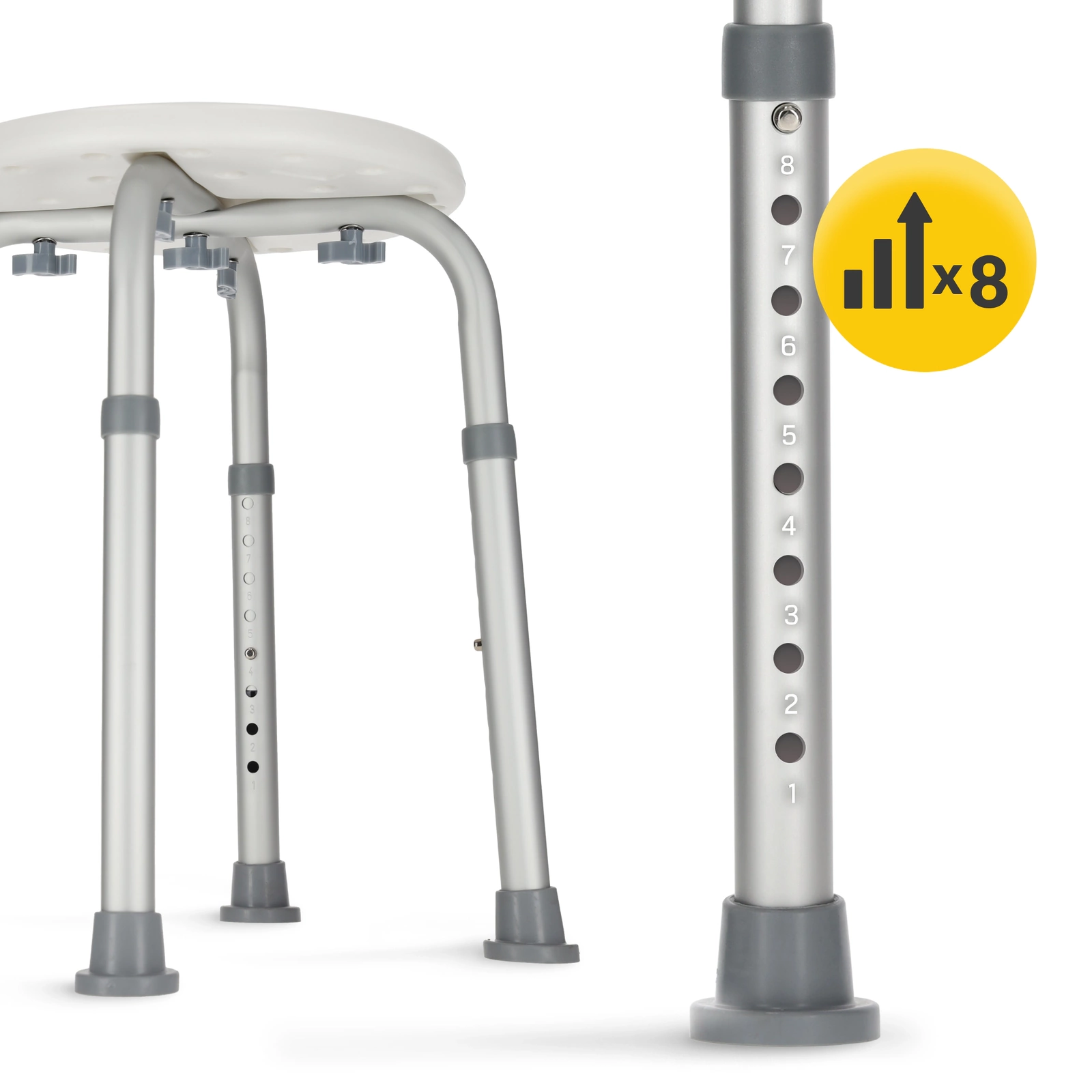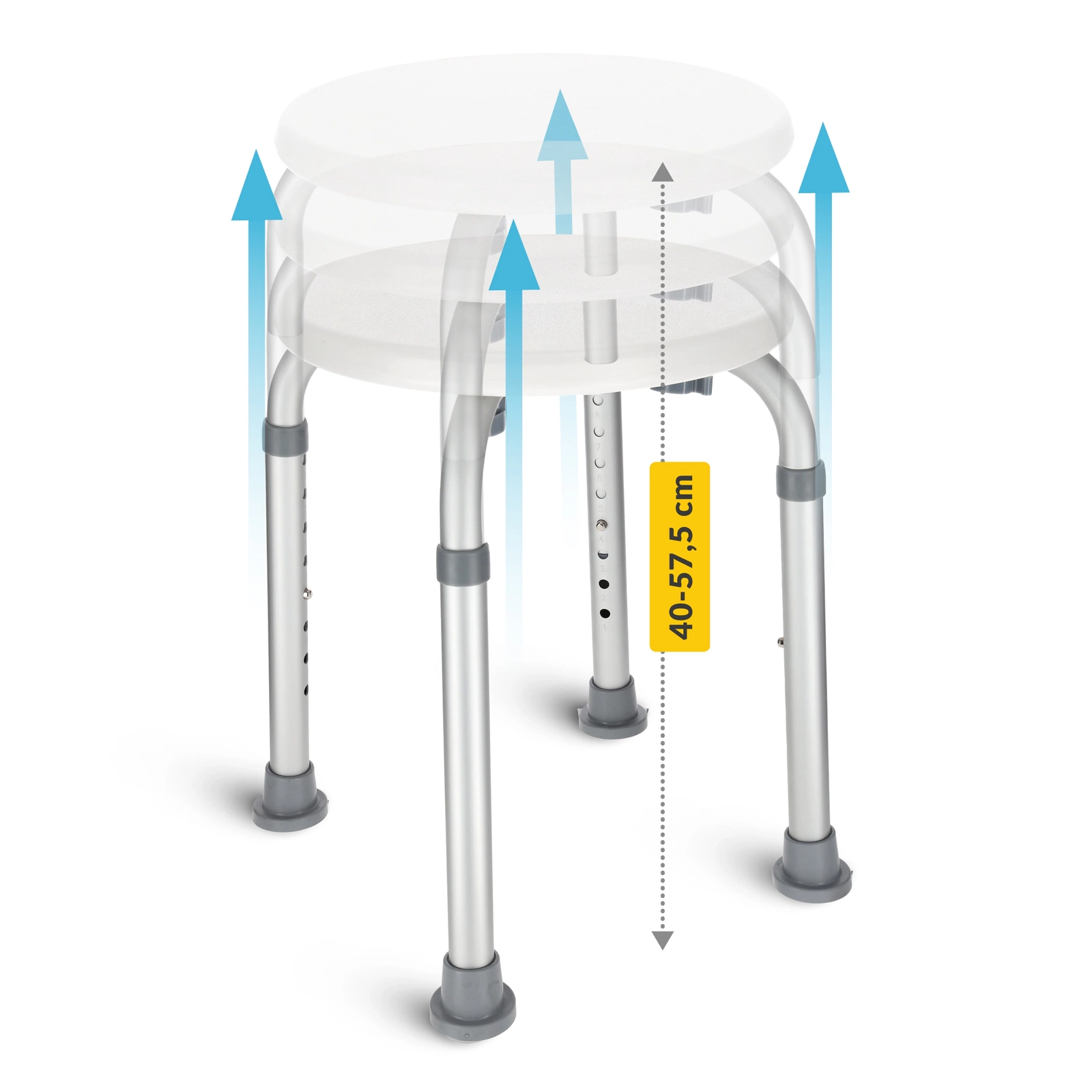 A kerek 4FIZJO zuhany zsámoly idősek számára kényelmet és komfortot jelent mosakodás közben. Emellett a szék stabil támaszt nyújt használójának. A fürdőszék stabil szerkezete szintén előnyt jelent. A antislip gumilábakkal együtt garantálják a biztonságot és az egyensúlyt a zuhanyfülke vagy a fürdőkád nedves és csúszós felületén. Ezen kívül a zuhanyzós rehabilitációs zsámoly rendelkezik magasságának beállítására való képességgel. A széles választéknak köszönhetően a terméket az Ön igényeihez igazíthatja. Ez a megoldás megkönnyíti a zuhanyzóba való be- és kilépést és minimalizálja a leesés kockázatát.