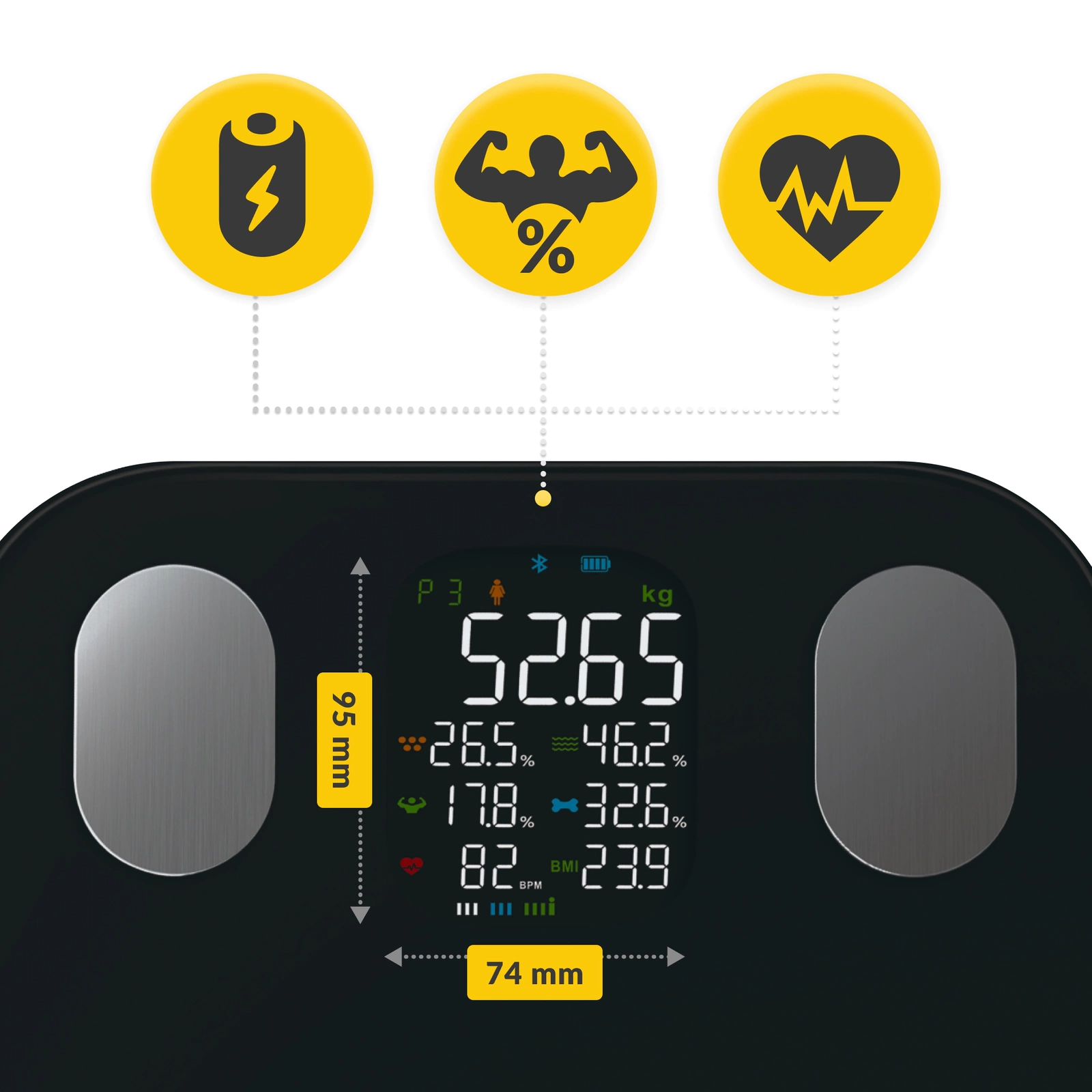 ✔️ Kijelző méretei: 74 × 95 mm