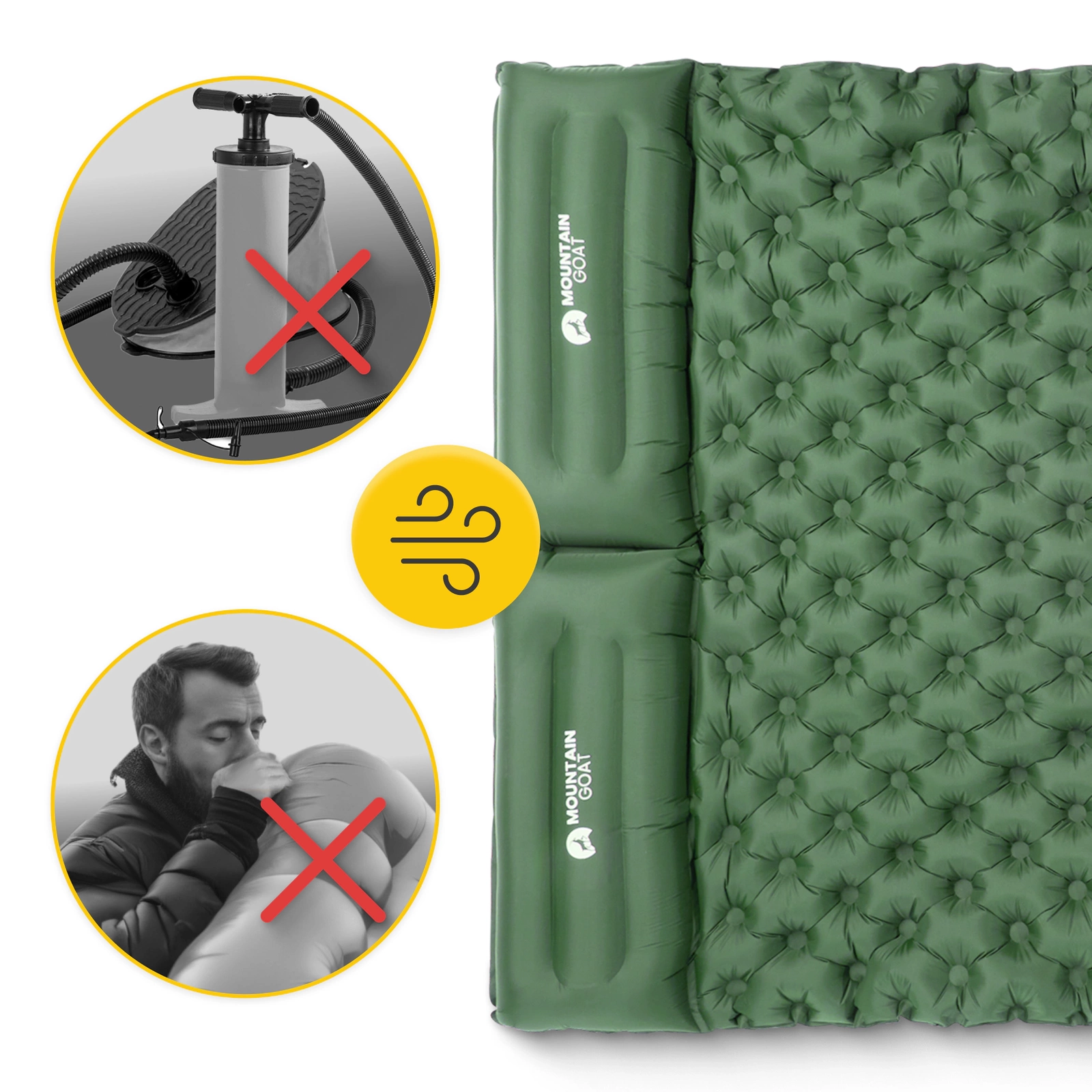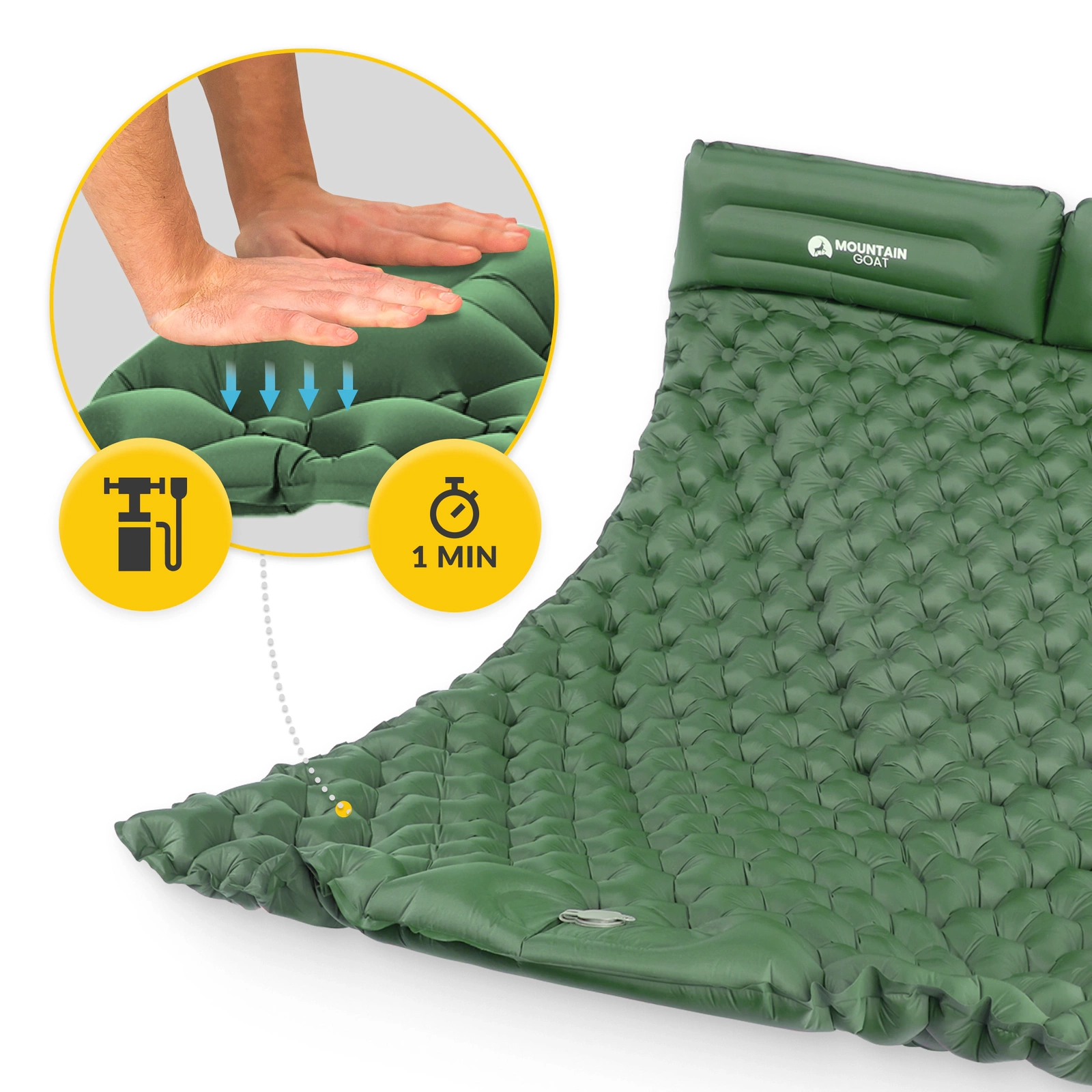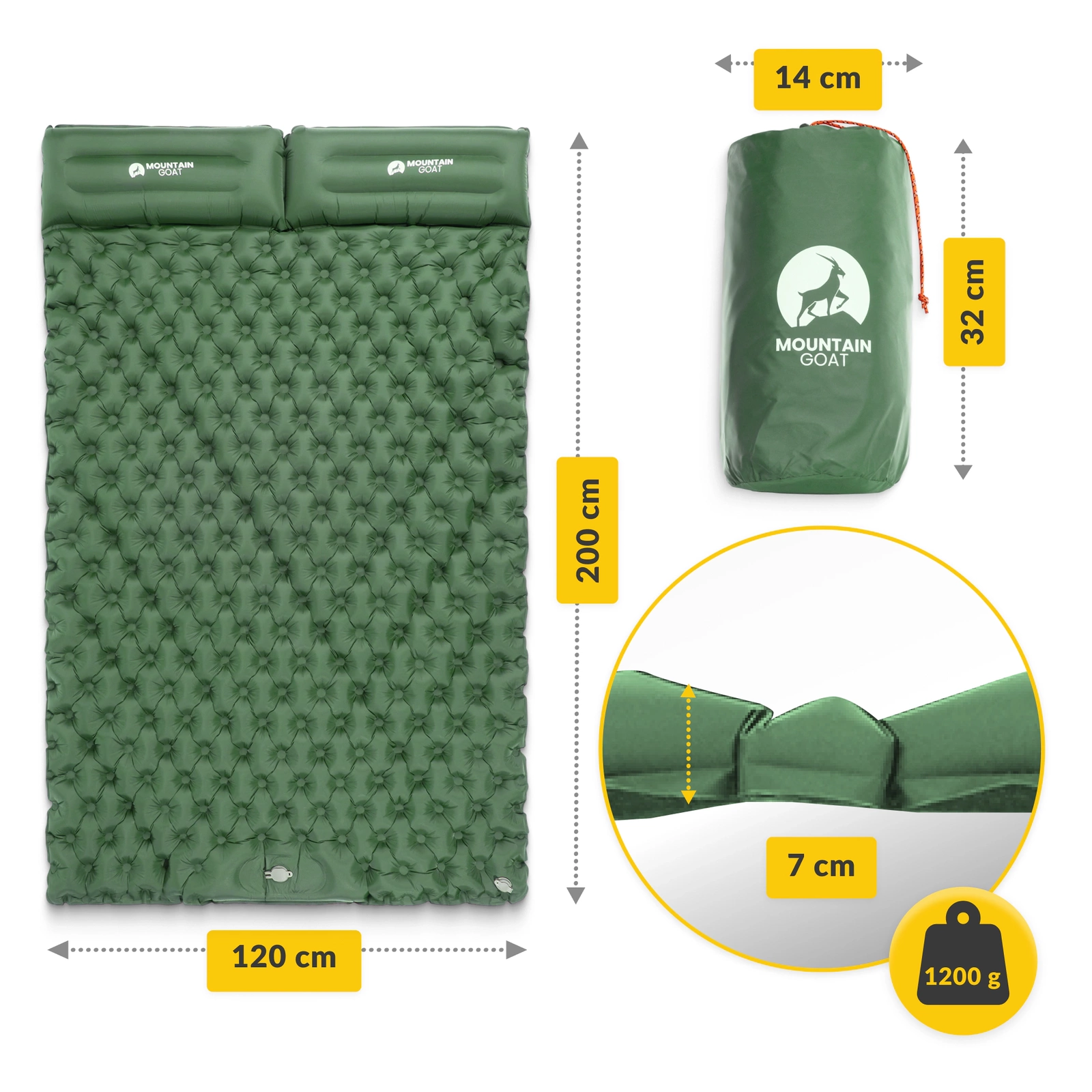 MOUNTAIN GOAT kétszemélyes, önfelfújó utazó matrac sátorhoz zöld