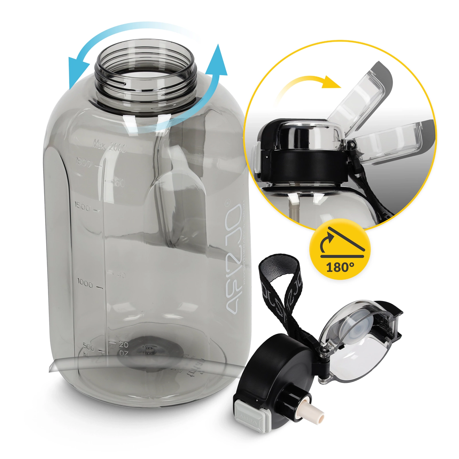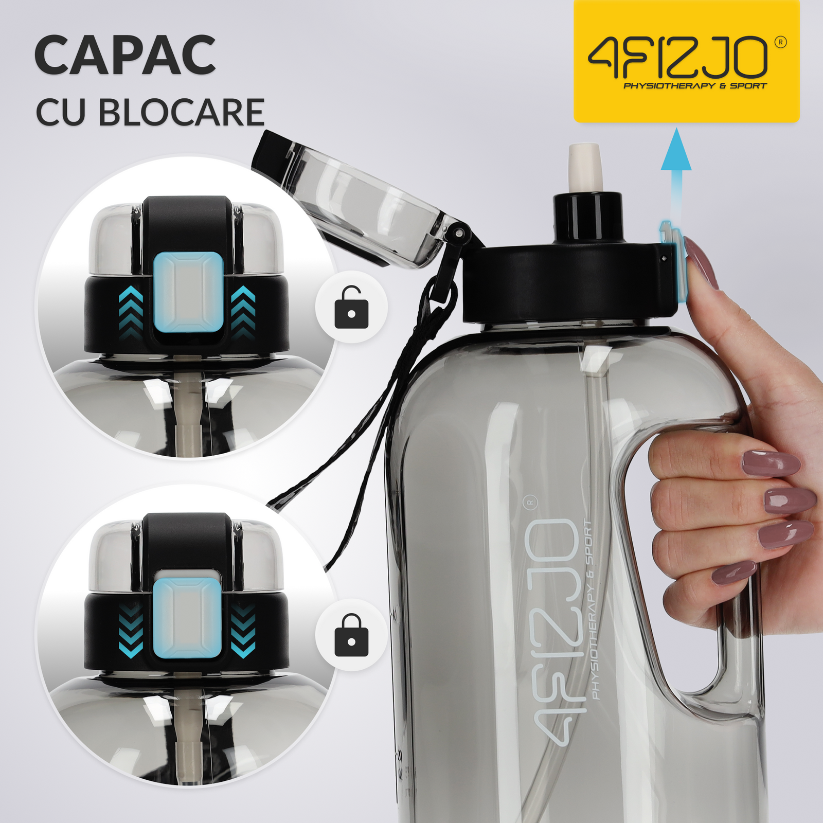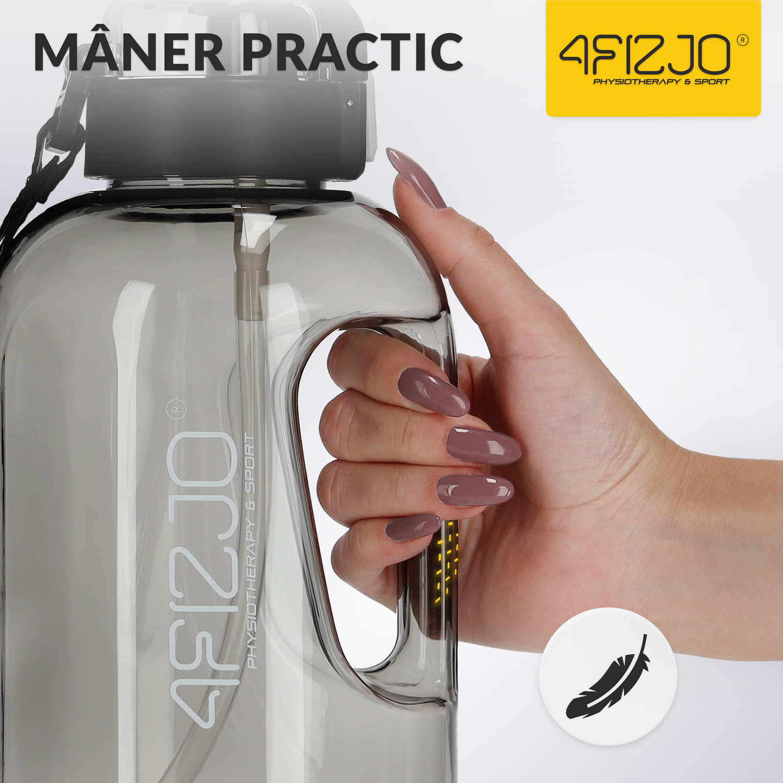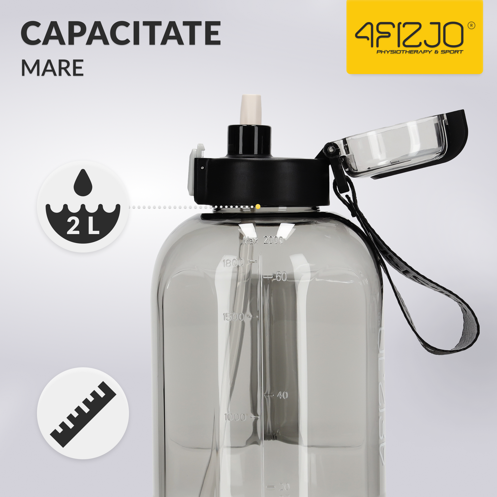 ▶️ Nagy kapacitás (2 liter) biztosítja az átlagos napi folyadékszükségletet, így segít ellenőrizni az elfogyasztott víz mennyiségét.