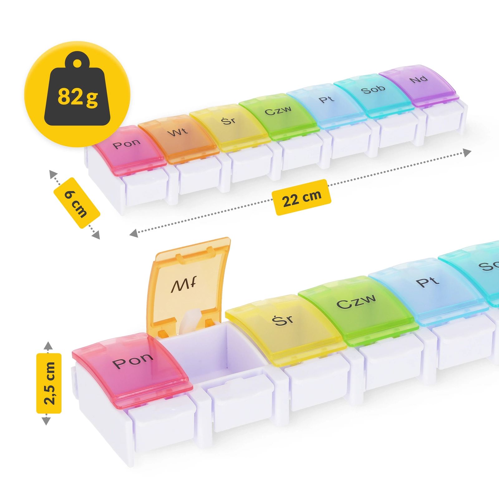 Egy hosszabb orvosi találkozó, egy séta a városban vagy egy egynapos kirándulás többé nem fogja lekésni a gyógyszereit időben. A tok kis mérete lehetővé teszi, hogy mindig legyen nálad! 7