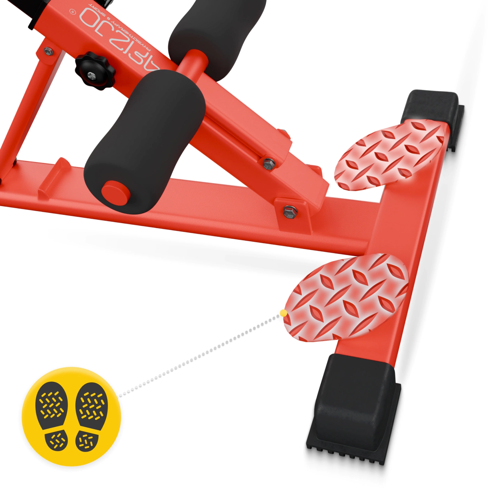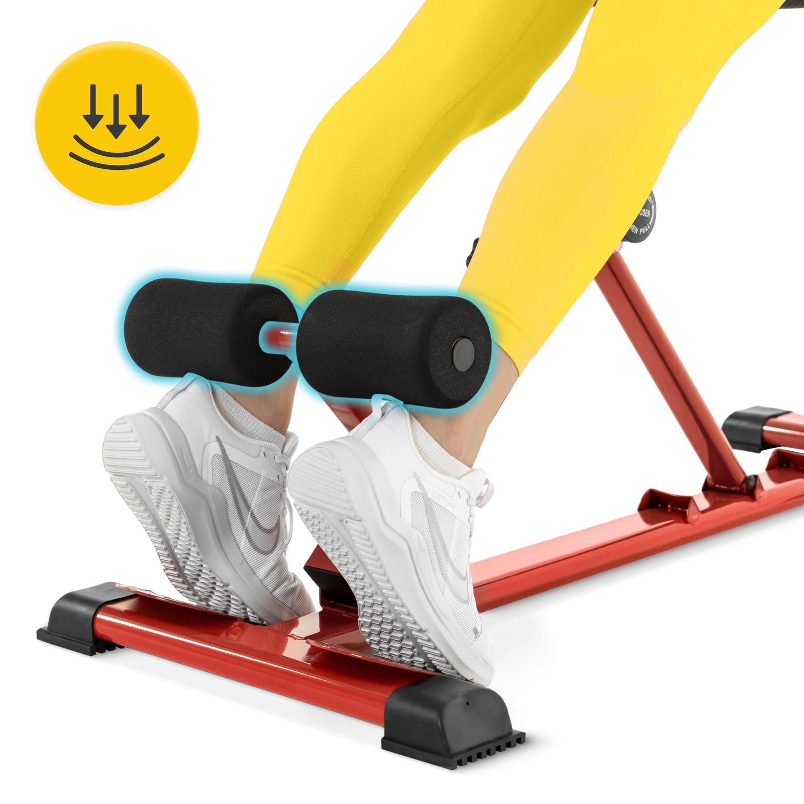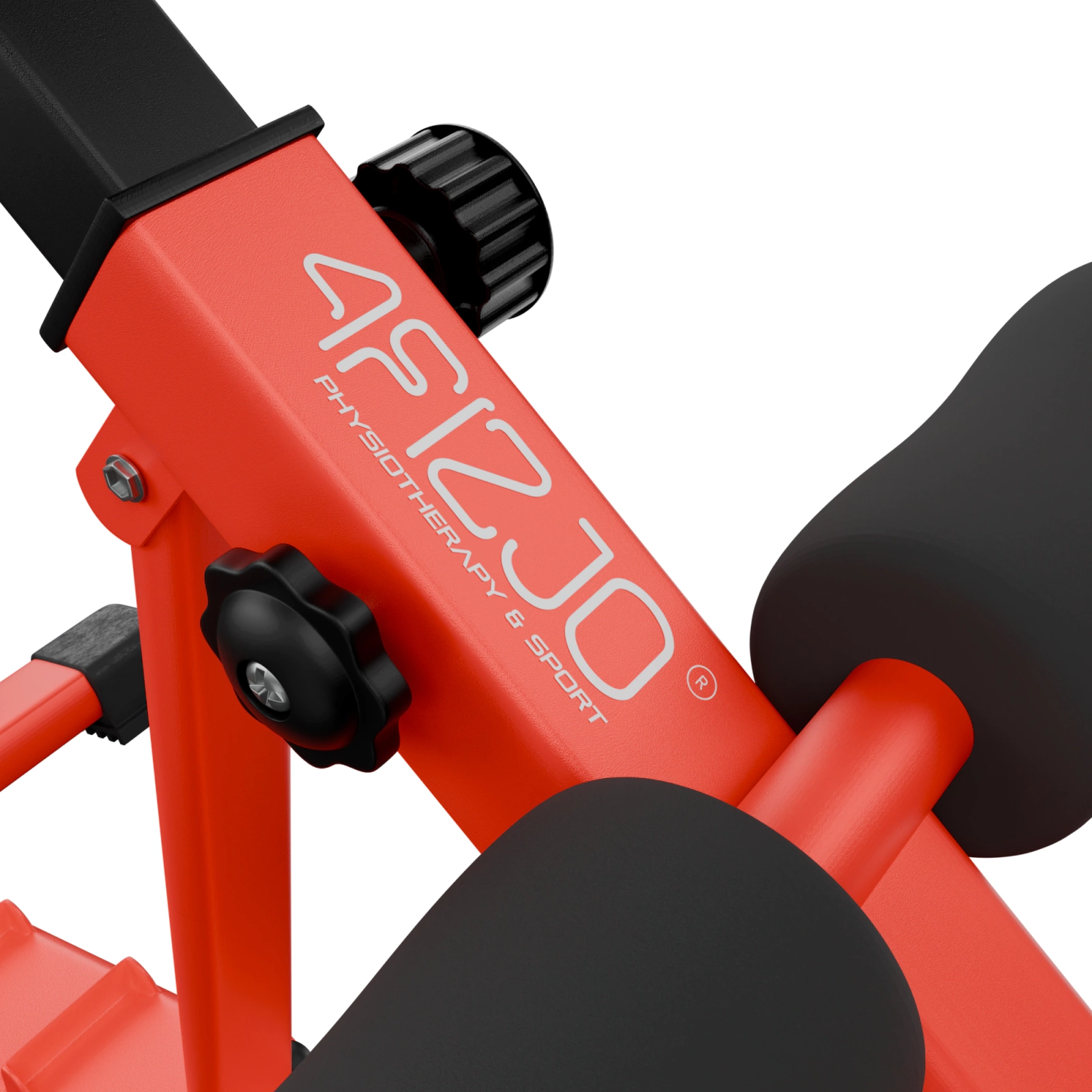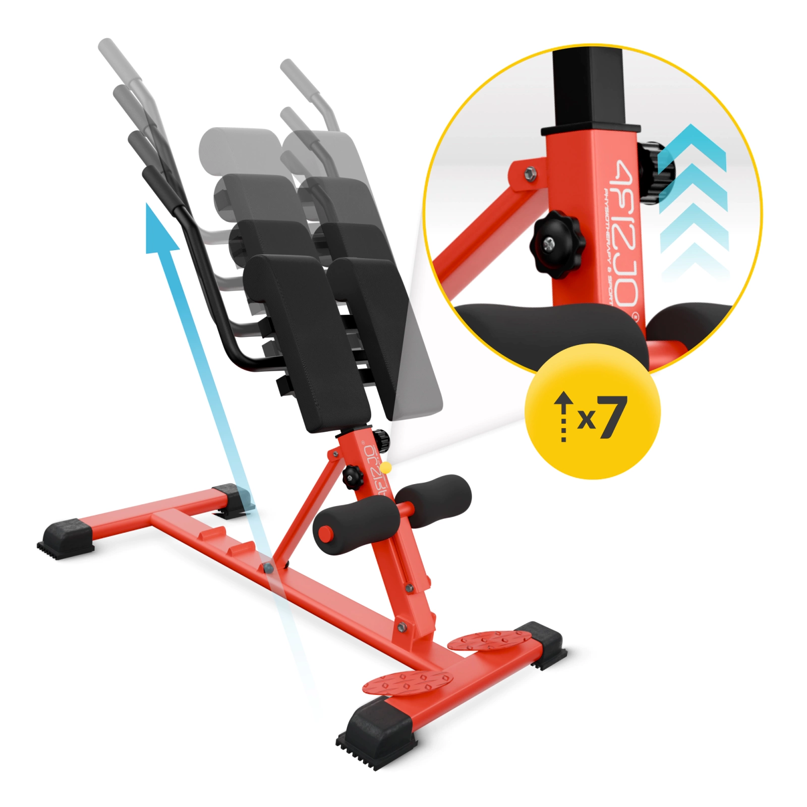 Egy jól felszerelt edzőteremben olyan állítható felszereléseket talál, amelyek könnyen az Ön magasságához, súlyához és fittségi szintjéhez igazíthatók. És az otthoni edzőterem is lehet ilyen! A 4FIZJO római edzőpad a comb alatti támla 7 fokozatú magasságállító rendszerrel lett felszerelve, amelynek köszönhetően gyorsan és hatékonyan beállíthatja a pozícióját a magasságához. Mi több, a dőlésszöget is beállíthatja, ami az edzés során a nehézségi fokot befolyásolja. Ezenkívül a kárpitozott támla vastag habszivacsból készült, amely maximális kényelmet biztosít még akkor is, ha extra súllyal edz.