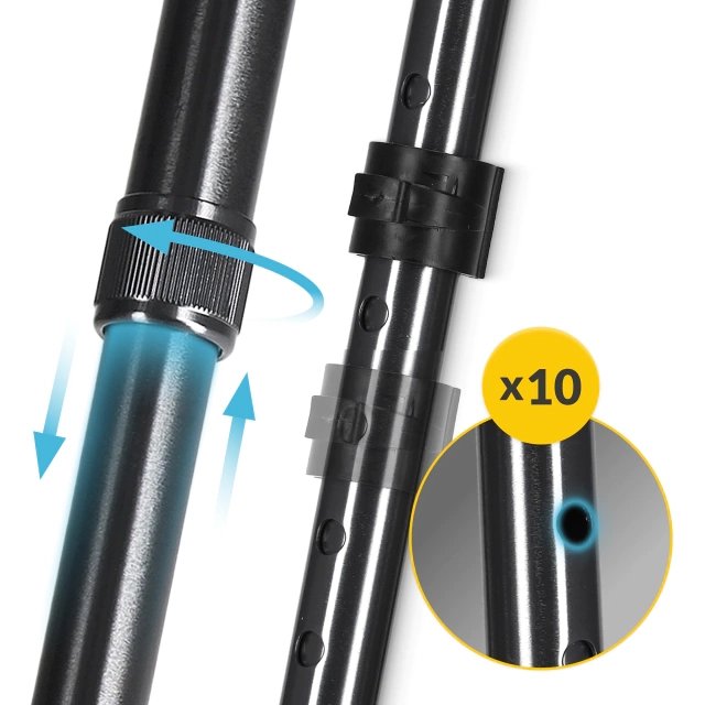✅ Az összecsukható, 10 fokozatban állítható kialakítás megkönnyíti a tárolást és a szállítást.