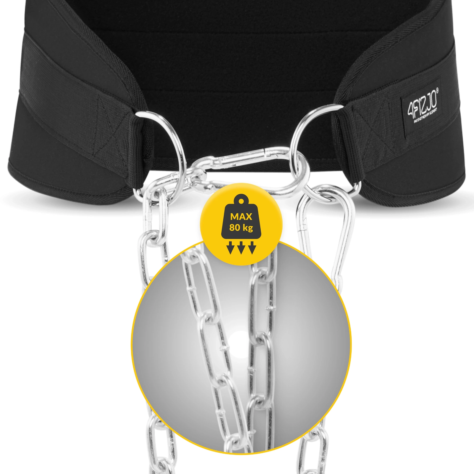 A Dip Belt kiválóan alkalmas professzionális testépítőknek és amatőr edzőknek egyaránt. Segítségével számos gyakorlatot végezhet a felső és alsó izmok számára, anélkül, hogy megterhelné a gerincet. A a láncrafelcsatolható plusz súlyoklehetőségének köszönhetően szisztematikusan növelheti a terhelést, ami még jobb eredményeket eredményez.