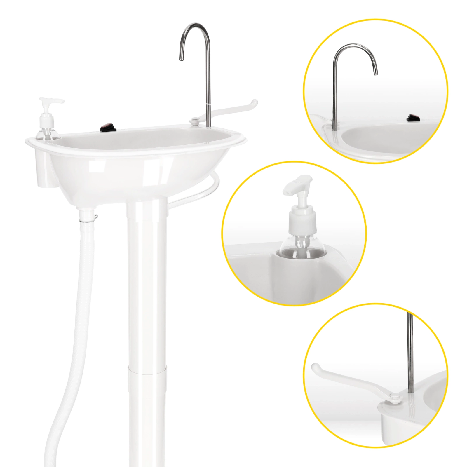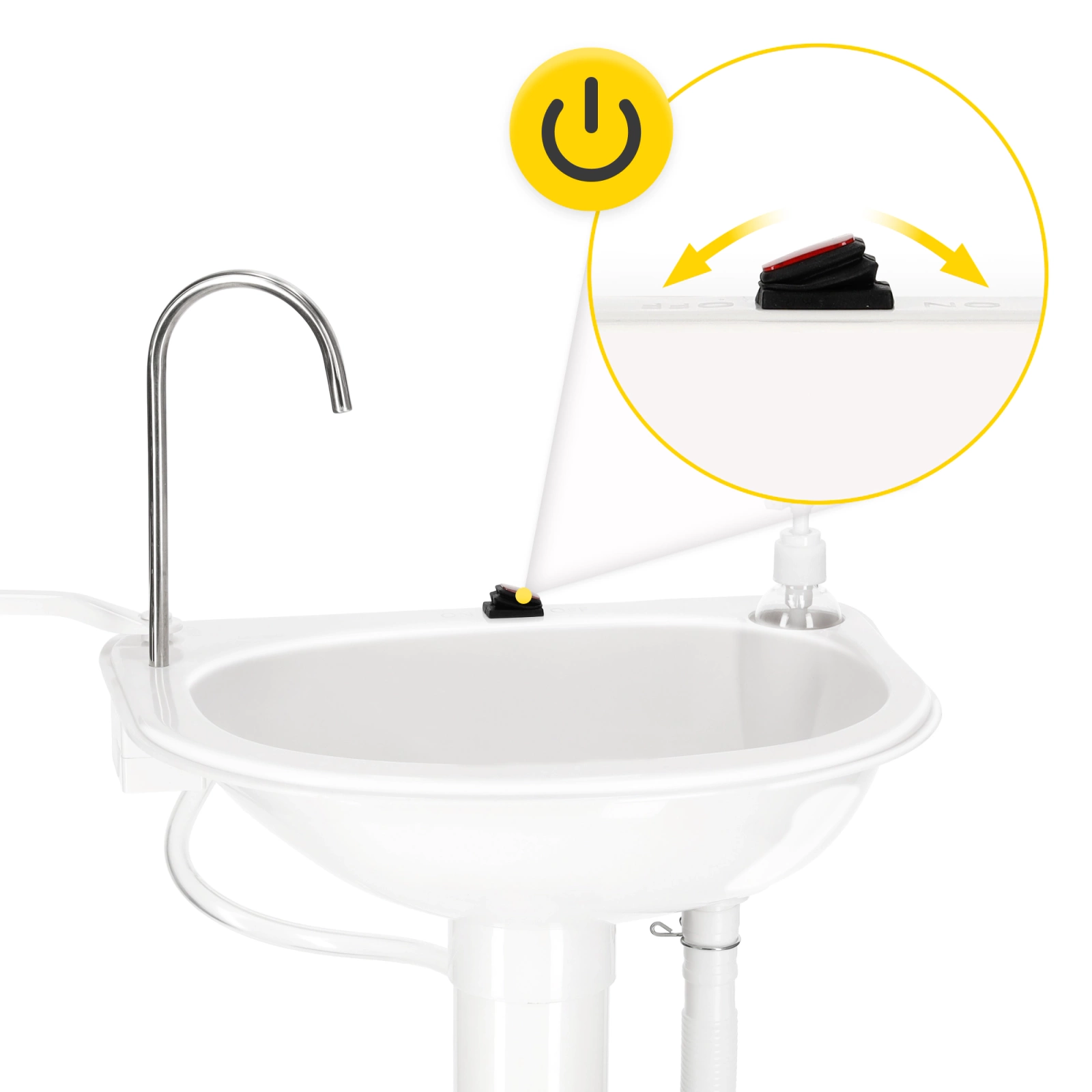 hordozható mosdókagylónk tervezésekor minden részletre odafigyeltünk, hogy maximalizáljuk a felhasználói kényelmet. Ezért lemondtunk a hagyományos lábpumpáról az USB-kábelen keresztül történő töltés javára. Ennek eredményeként az utazó mosdók használata nem igényel erőfeszítést az Ön részéről. Mindössze annyit kell tennie, hogy kapcsolja a gombot, és a víz villámgyorsan folyni fog. Ráadásul a csaptelep tápegysége garantálja az állandó vízsugárnyomást, ami például mosogatáskor nagyon hasznos. Mosdókagylók feltöltése sem okoz majd gondot - ezta mellékelt USB-kábellel teheti meg.