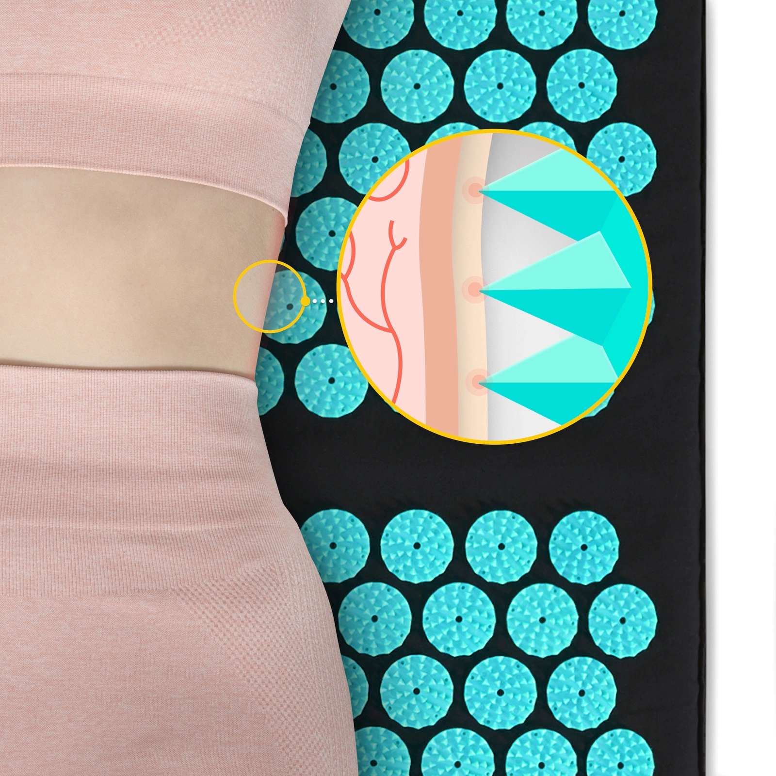 A tüskék ABS műanyagból készülnek, amely nem mérgező, hipoallergén és nem irritálja a bőrt. Egyszerű alakúak. Élesek, de a bőr biztonsága érdekében tompa végűek. Ez a kialakítás javítja a vérkeringést az egész testben. Ne aggódjon a bőrpír miatt. Ez a test természetes reakciója.