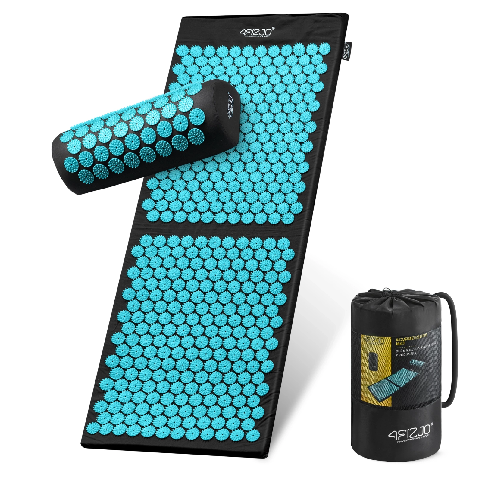 Nagy akupresszúrás szőnyeg XL 4FIZJO klasszikus fekete és kék párnával