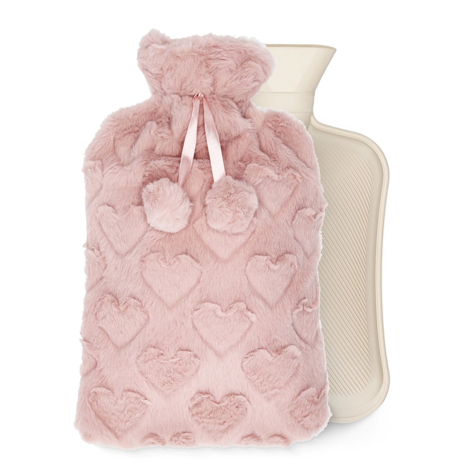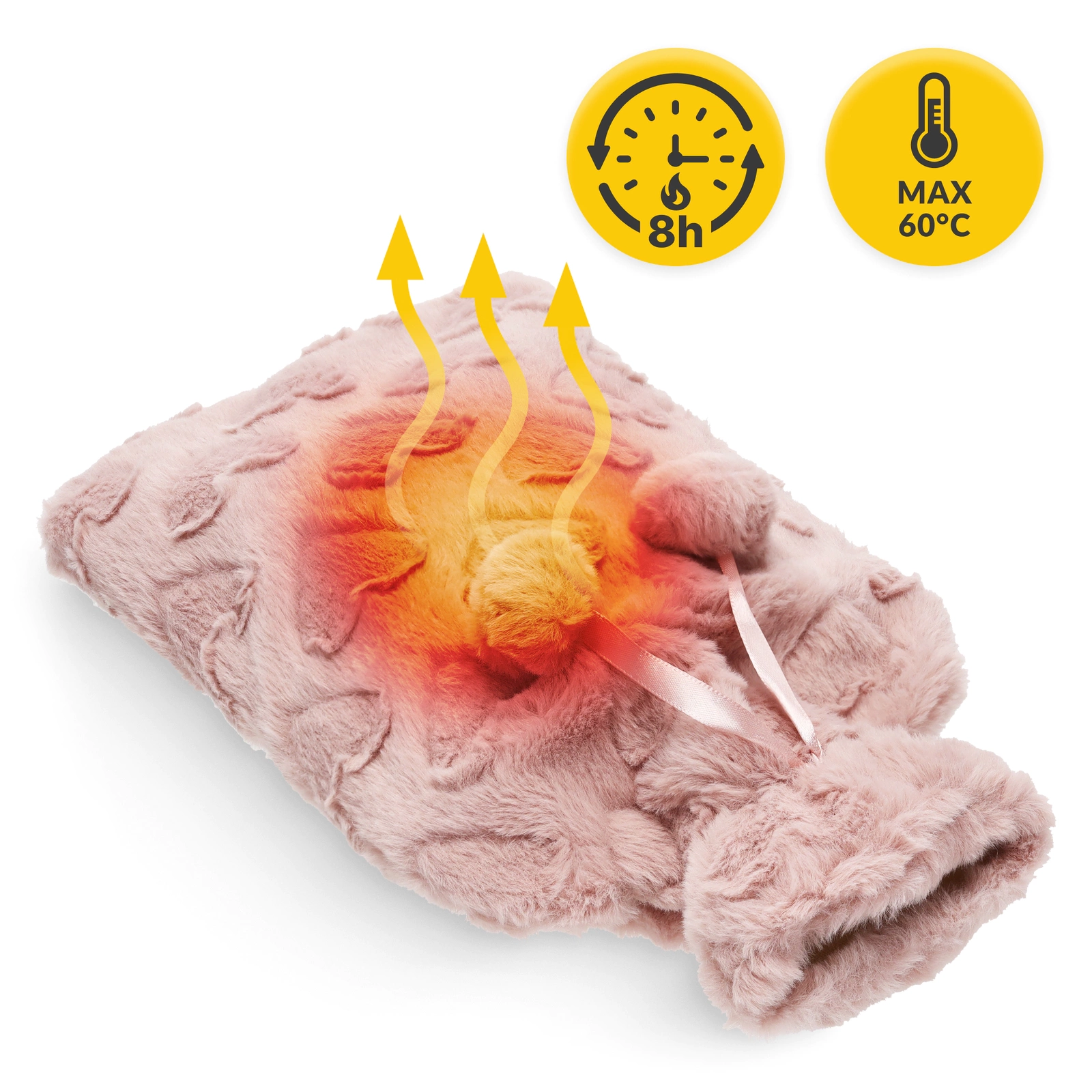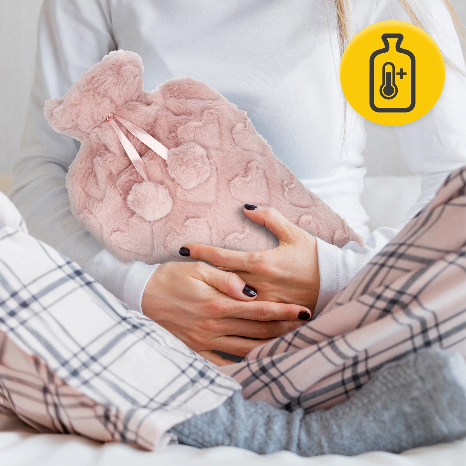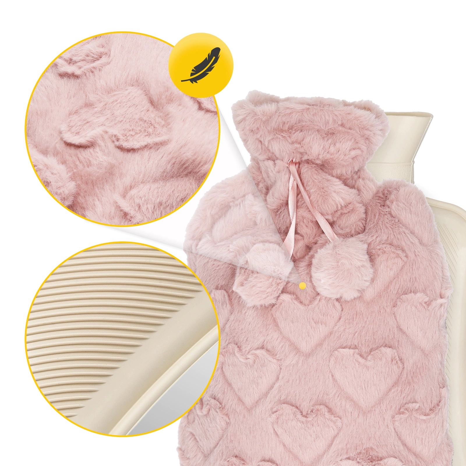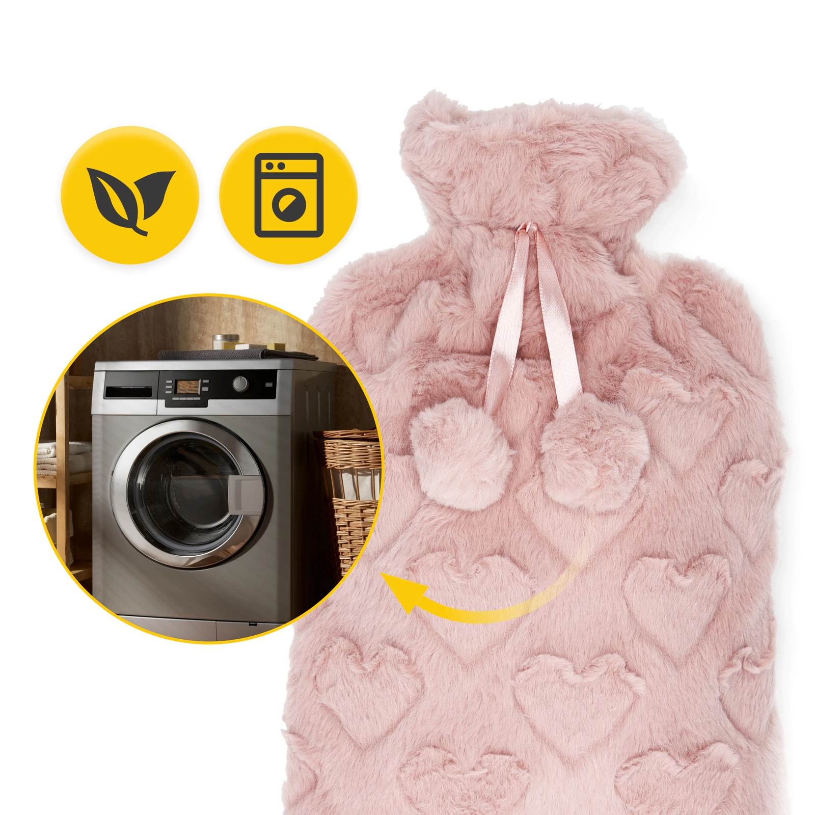 Gumi melegítőpalack szív mintás plüss szövetborítással, 2 l