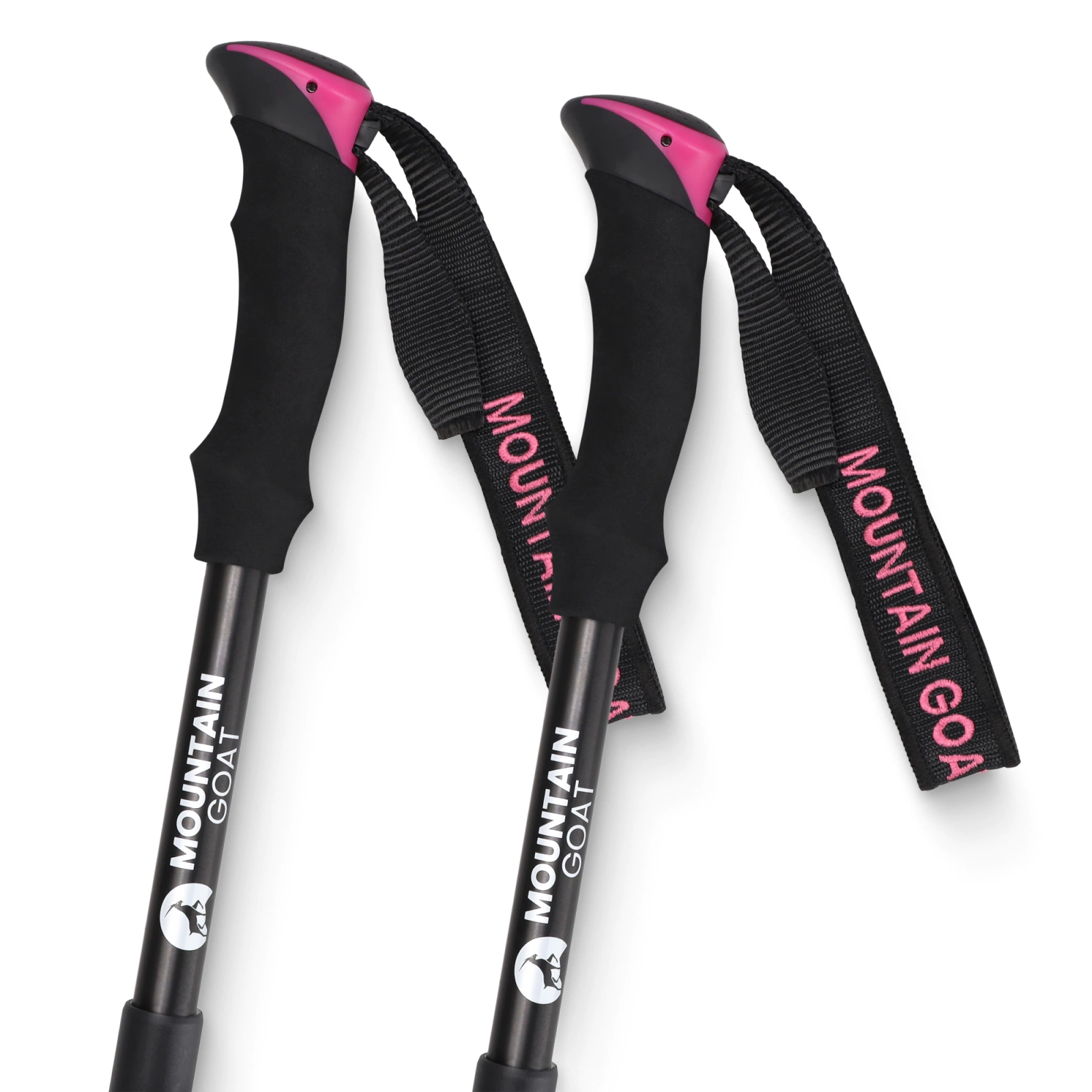 PRO+ MOUNTAIN GOAT összecsukható nordic walking és trekkingbot, rózsaszín