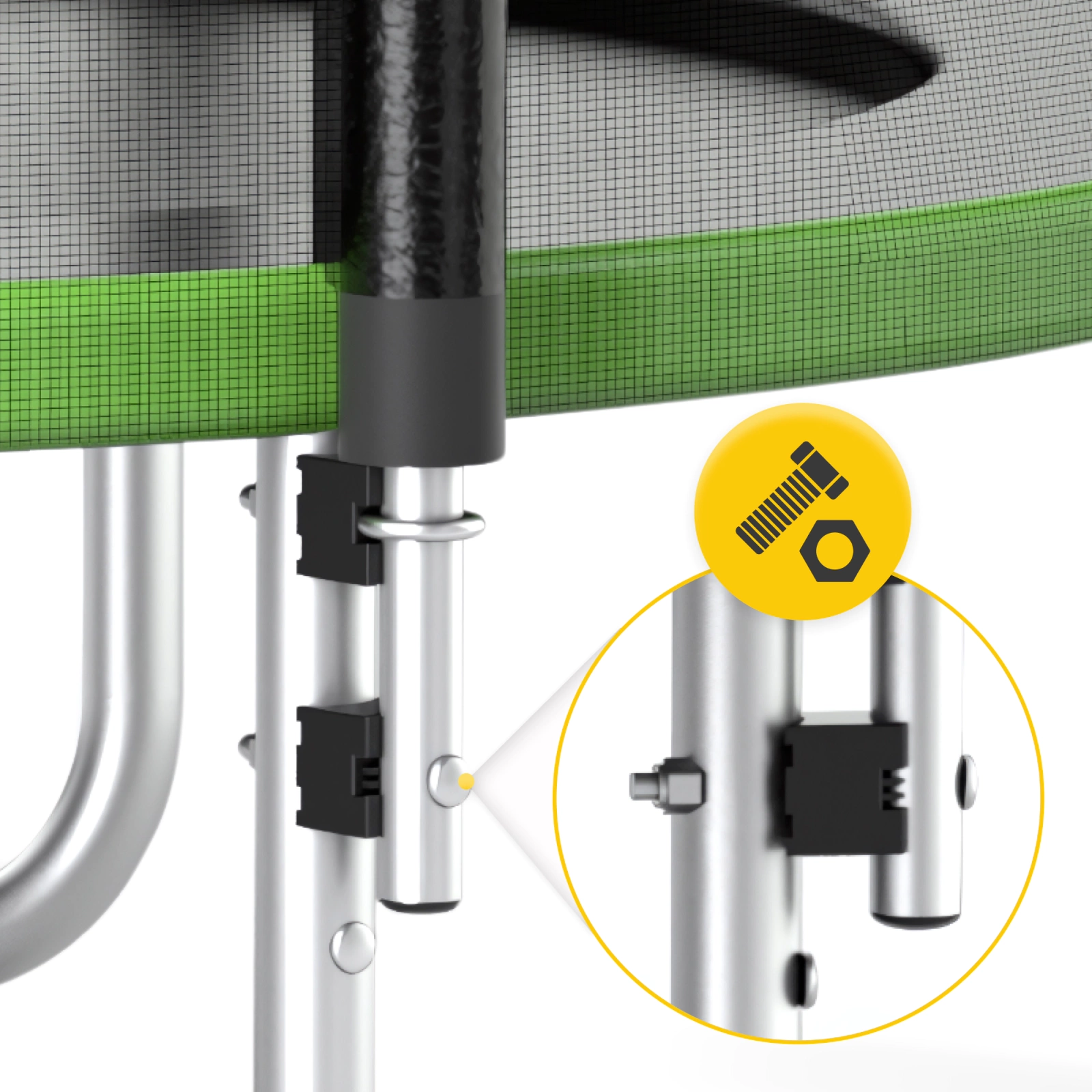 A CLASSIC trambulin összeszerelése egyszerű és intuitív. A használati útmutató lehetővé teszi a gyors és problémamentes felállítást, még akkor is, ha először csinálsz ilyet.