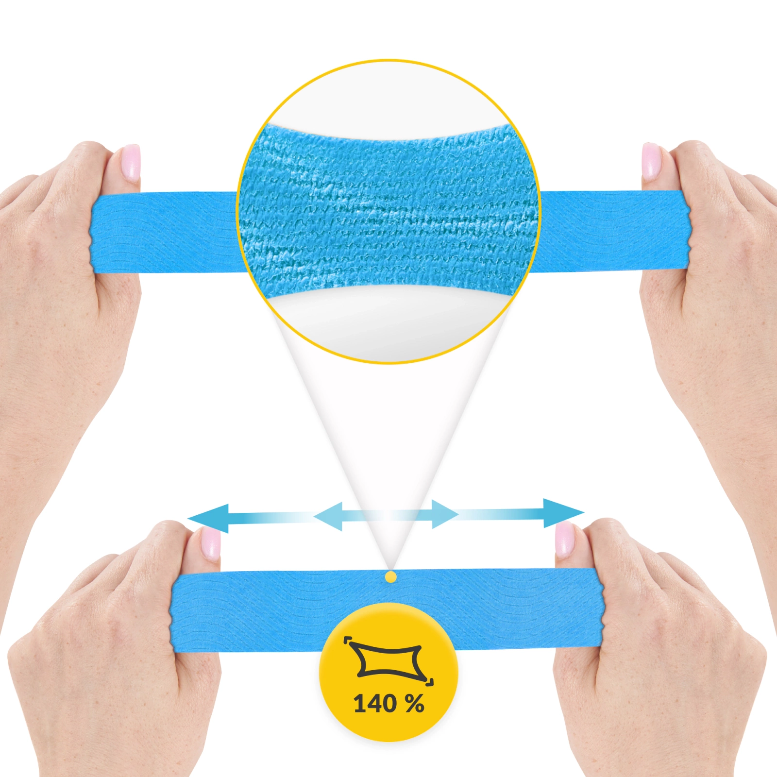 Kínálatunkban megtalálható a 5 cm x 31 m méretű, vízálló kineziológiai tapasz. Az első szám a tapasz szélességét, a második a teljes hosszát jelzi. Az 5 cm szélesség egy standard, univerzális méret, amely a leggyakoribb ragasztási technikákhoz (X, I, Y) ideális. A tapaszt részekre vágva kisebb testrészekre is fel lehet helyezni.
