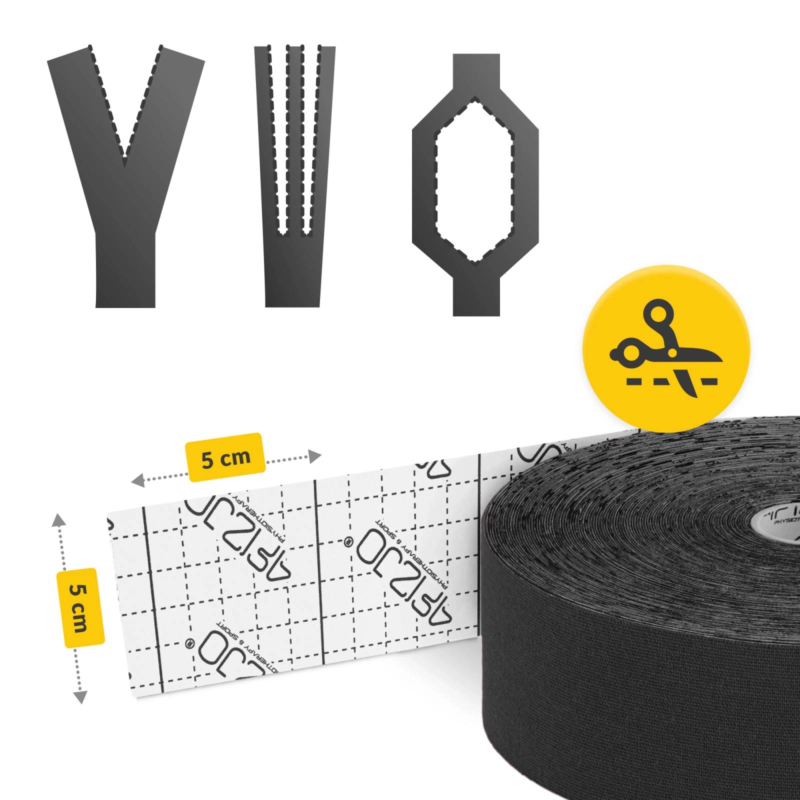 Kínálatunkban megtalálható a 5 cm x 31 m méretű vízálló kineziológiai szalag. Az első paraméter a szalag szélességét, a második pedig a sportszalag teljes hosszát jelzi. Az 5 cm-es szélesség egy szabványos, univerzális méret. Ez a tekercs a népszerű taping módszerekhez (X, I, Y) használható. Darabokra vágható és a test bármely kisebb részére felhelyezhető.