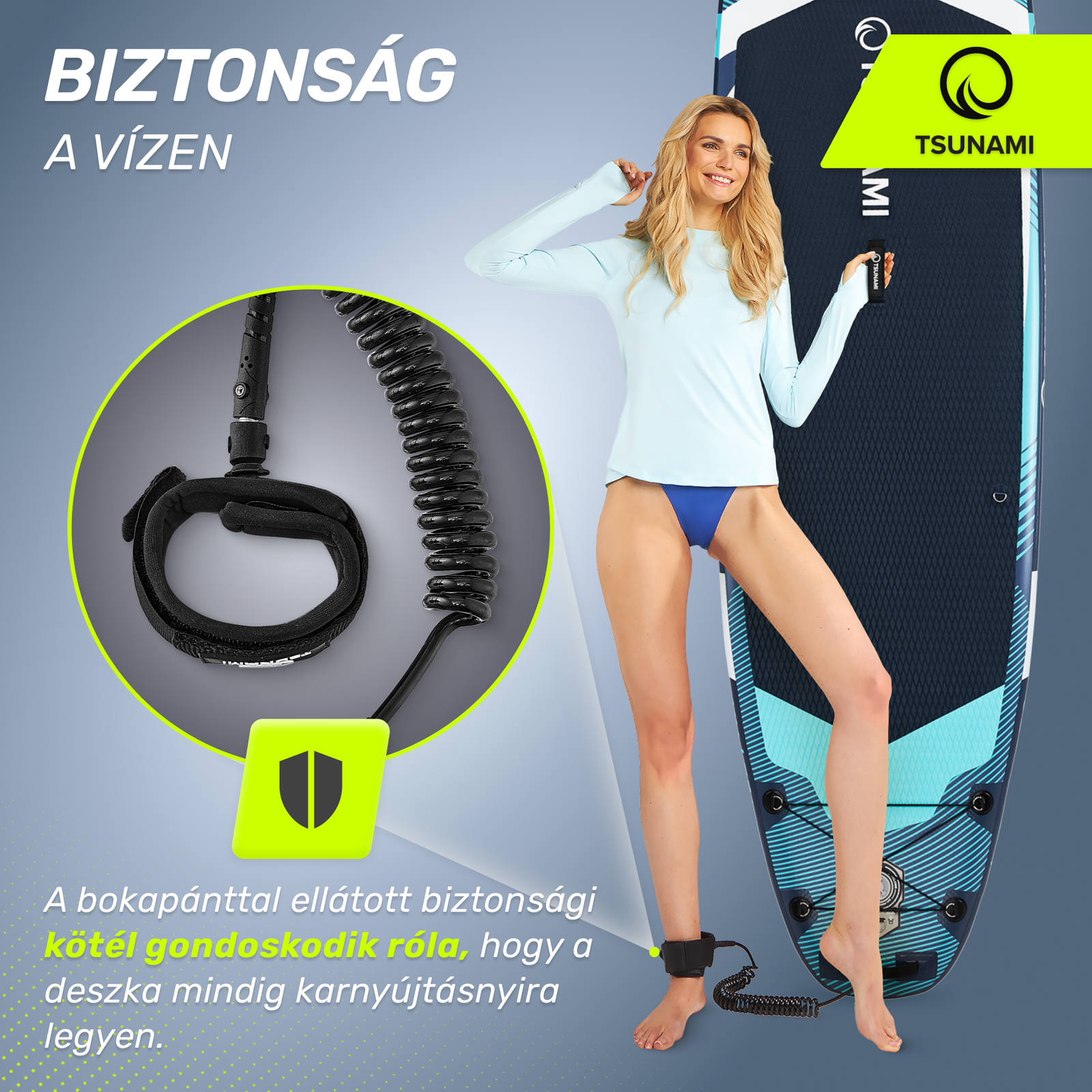 A TSUNAMI SUP PRO deszka szettje állítható, kétlapátos evezőt, biztonsági pórázt és minden szükséges tartozékot tartalmaz, így további költségek nélkül kezdhetsz bele ebbe a sportba.