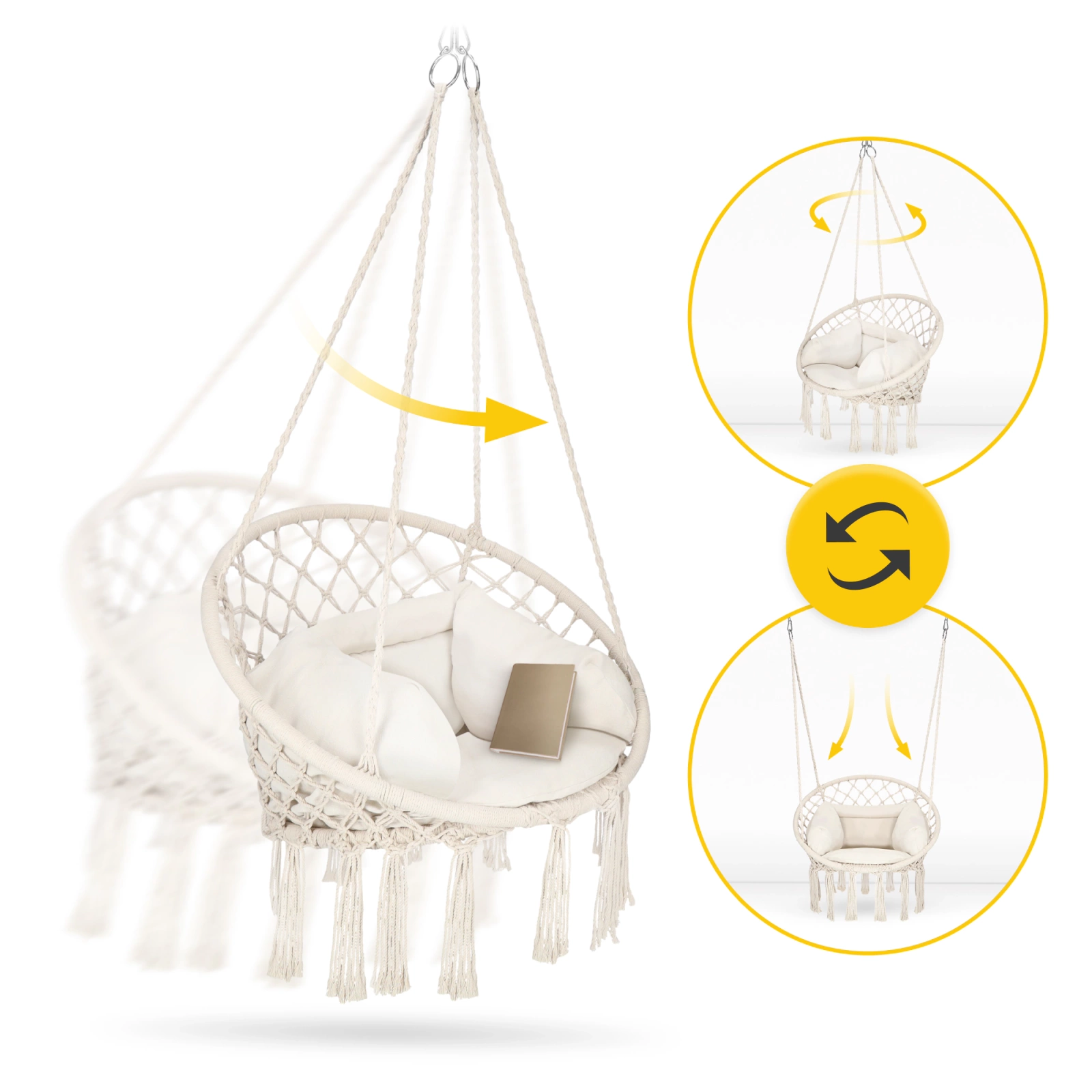 BOHO függőfotel párnával – bézs, kerti hinta