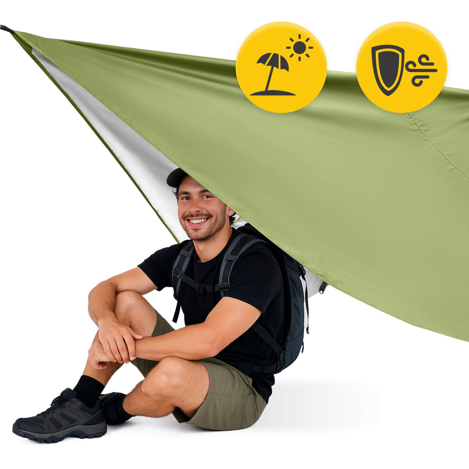 A MOUNTAIN GOAT kemping vászon egy könnyű és praktikus alternatívája a sátornak, amelyet könnyen össze lehet csomagolni, szállítani és gyorsan fel lehet állítani. A MOUNTAIN GOAT kemping ponyva előnyei közé tartoznak: