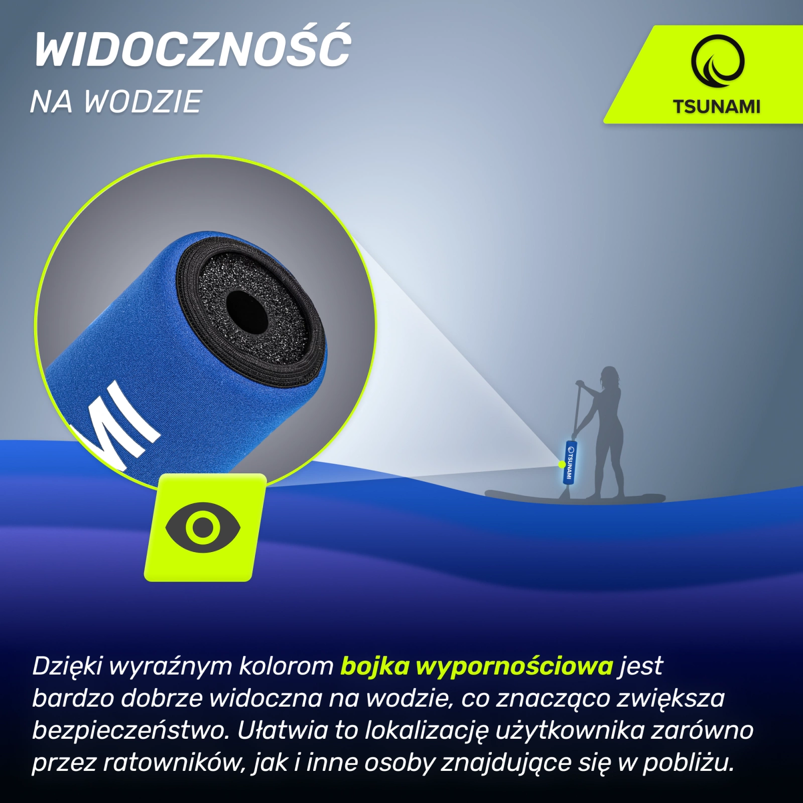 A SUP deszka nagyszerű módja annak, hogy aktív legyen a vízen. Lehetővé teszi, hogy új helyeket fedezzen fel, és élvezze a természettel való kapcsolatot. Amikor az első lépéseket teszed a deszkán, szükséged lehet némi extra támogatásra - a SUP TSUNAMI evezőbója, más néven evezős úszó. A bójával nem kell aggódnod, hogy az eveződ elsüllyed, ha véletlenül a vízbe ejted.