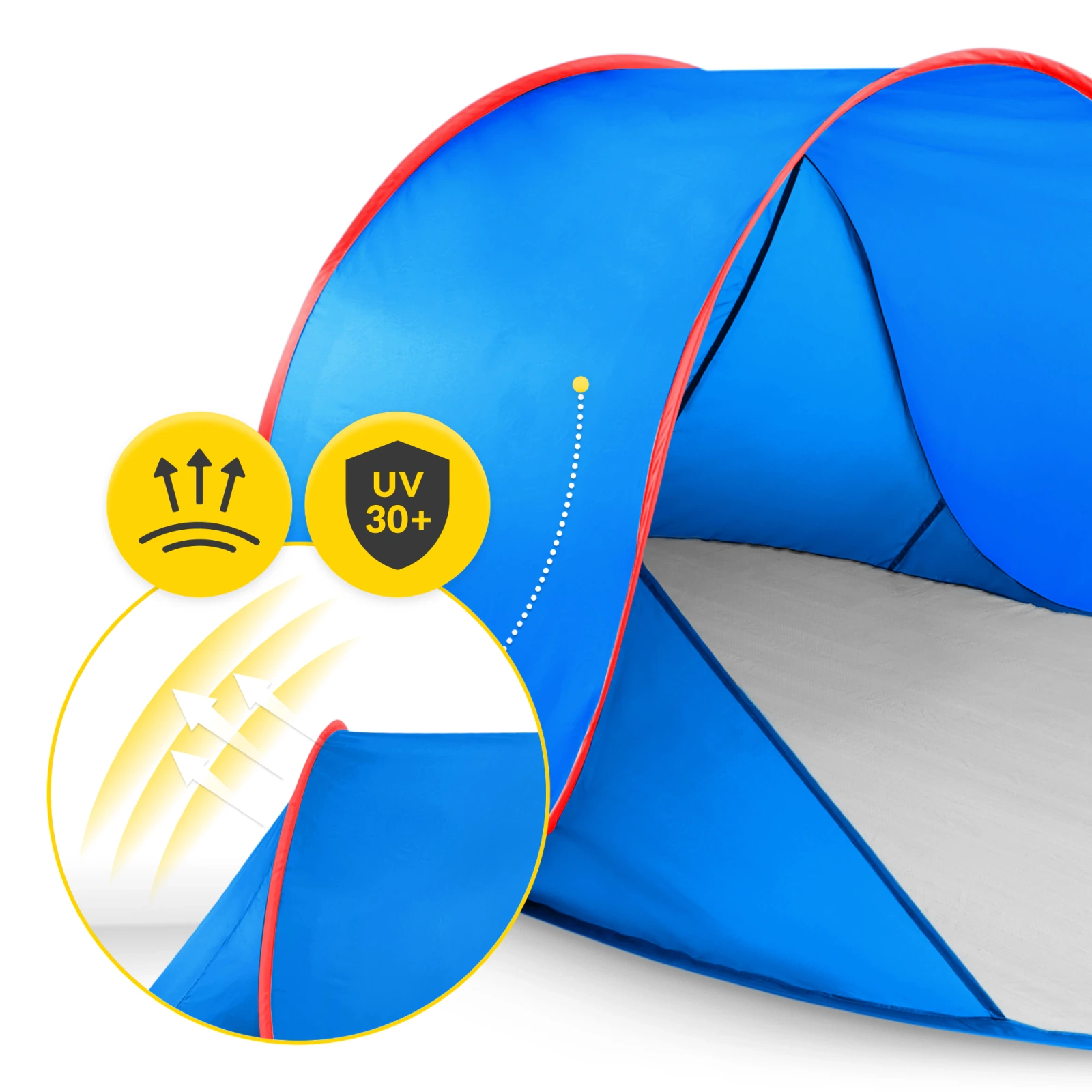 ✅ Az összecsukható strand sátor hatékony védelmet nyújt a nap, a szél és a homok ellen.