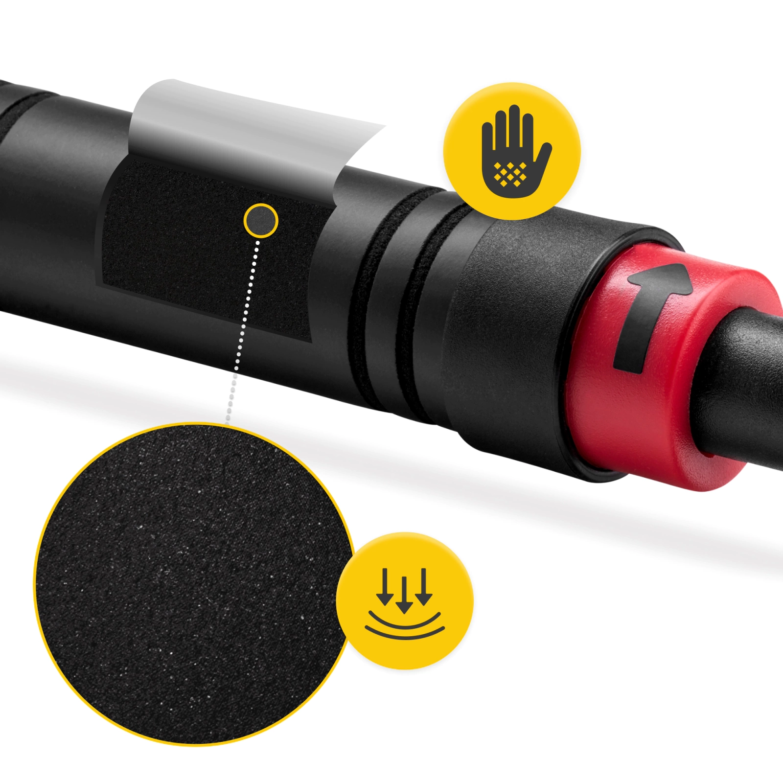 Kényelmes fogórész – a puha habszivacs illeszkedik a kéz formájához, és nem szívja magába az izzadságot.