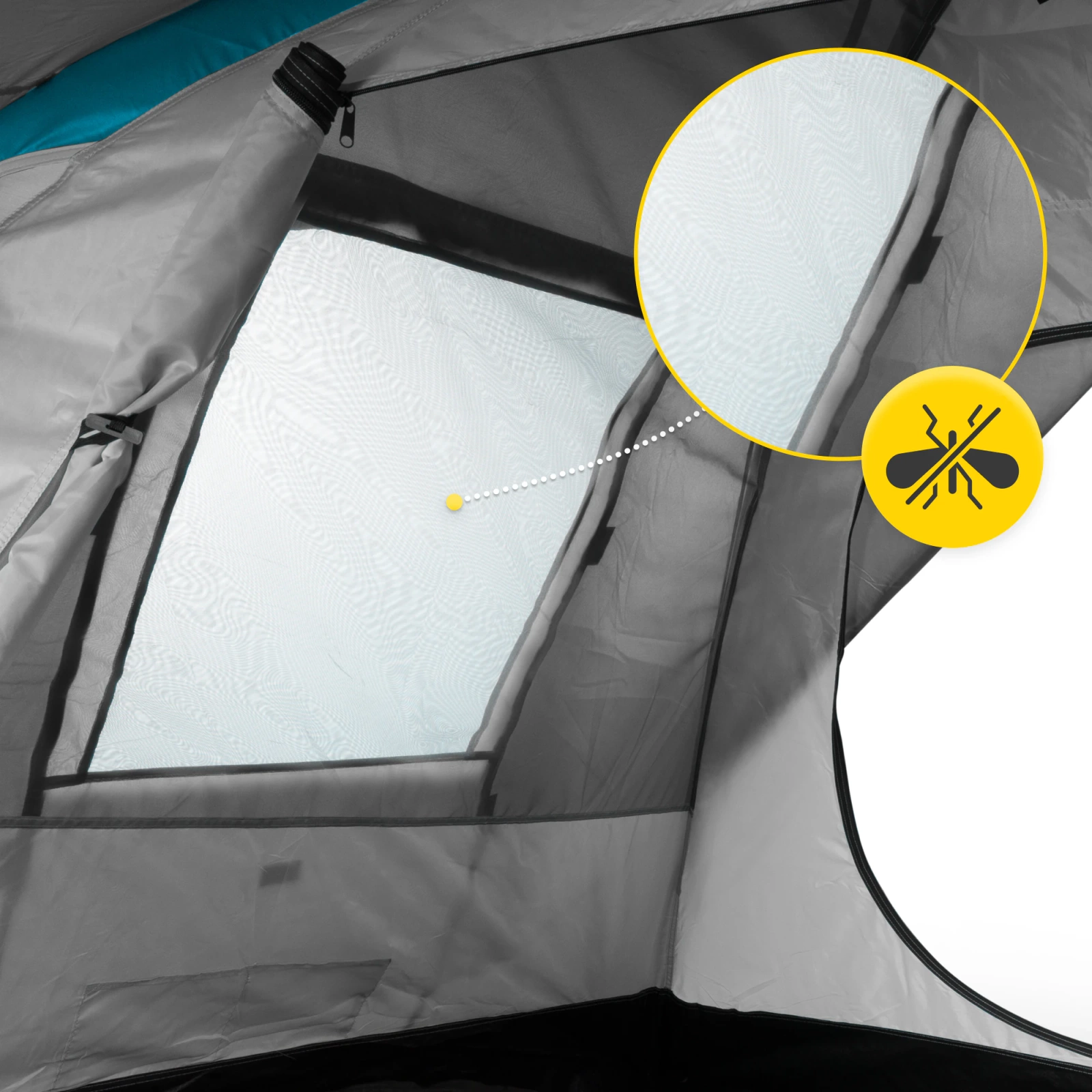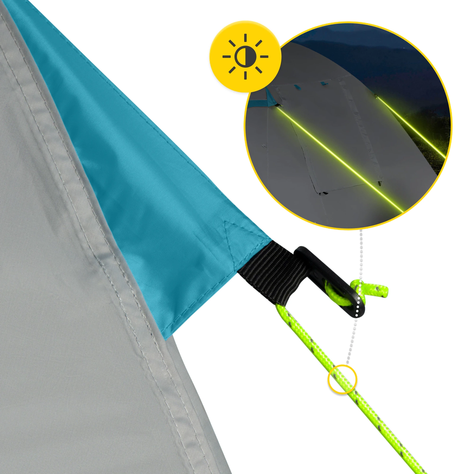 Nem kell aggódnia az eső vagy a reggeli harmat miatt. A sátor teteje vízálló poliészterből (4000 mm H₂O), a padló pedig szivárgásálló polietilénből (6000 mm H₂O) készült. Ezenkívül a varratokat gondosan leragasztották, hogy megakadályozzák a szivárgást a nedvességre leginkább hajlamos területeken.