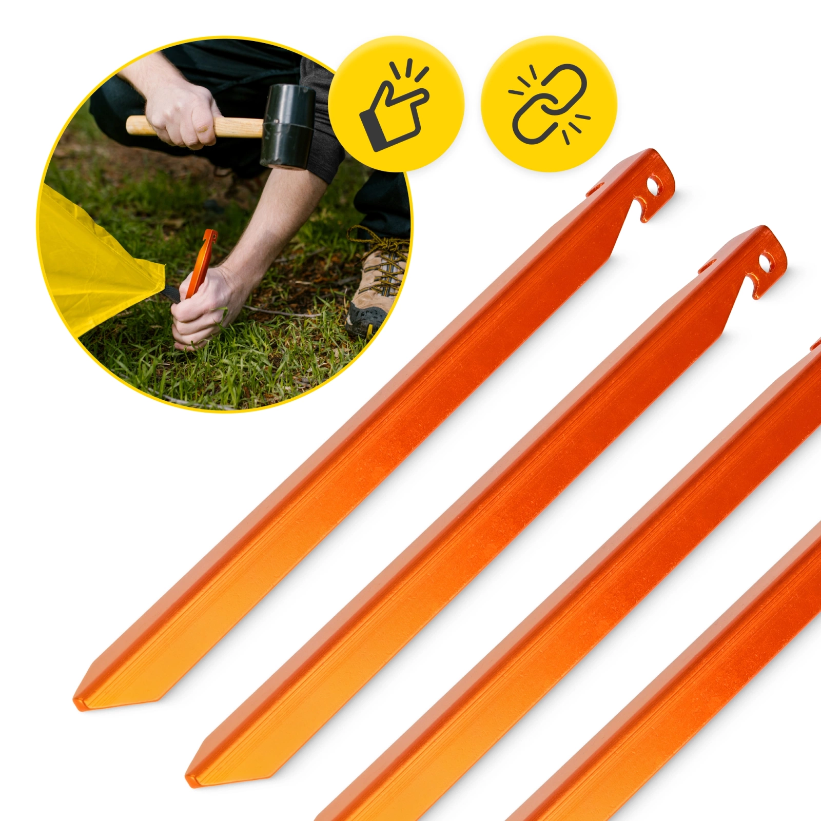 Ezek a csapok jól tartanak puha talajon (fű, homok) és sziklásabb terepen egyaránt. A tetején lévő lyuk lehetővé teszi, hogy könnyen beakaszthasson egy hevedert vagy rögzíthessen egy eltávolító hurkot. Ez egy olyan modell, amely ötvözi az ultrakönnyűséget a sokoldalúsággal.