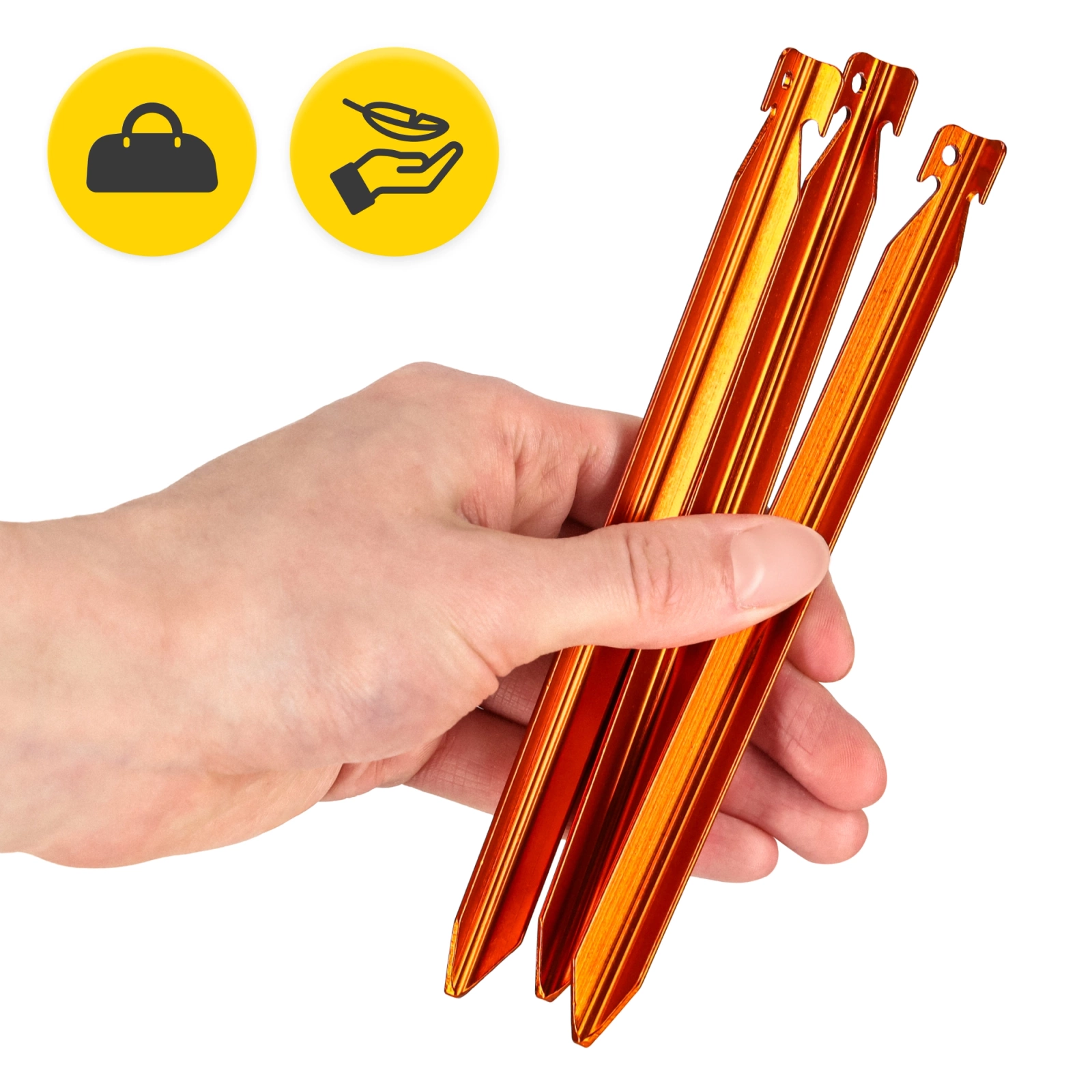 A V alakú sátorszegek tökéletes választás azok számára, akik ultrakönnyű, tartós és kompakt kültéri kiegészítőket keresnek. Kialakításuk biztosítja a stabilitást a legkülönbözőbb talajtípusokon, intenzív színüknek köszönhetően pedig könnyen megtalálhatók a terepen. Ez az egyik legsokoldalúbb ultrakönnyű stiletto modell a piacon - ideális hosszú túrákhoz és hátizsákos expedíciókhoz.