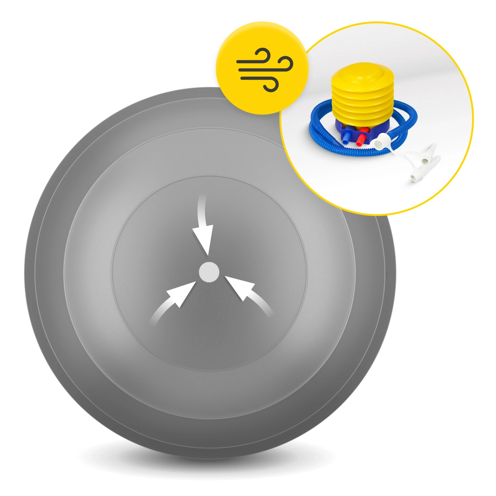 2️⃣ Napompuj piłkę do 80% jej objętości – przed pierwszym użyciem piłki pozostaw ją napompowaną na 24 godziny, aby się rozciągnęła i mogła nabrać odpowiednią średnicę i kształt. Wysokiej jakości piłki wykonane są z grubego materiału, który potrzebuje czasu na rozciągnięcie.