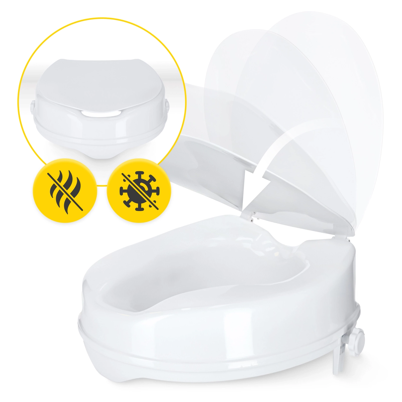 Csípőműtét után, mozgáskorlátozottak vagy nehezen fel- és leszálló emberek számára - a 4FIZJO WC-ülésmagasító valódi segítséget jelent a mindennapokban. Lehetővé teszi, hogy a felhasználó biztonságos, stabil helyzetben használhassa a WC-t anélkül, hogy a térd- és csípőízületeket indokolatlanul megterhelné.