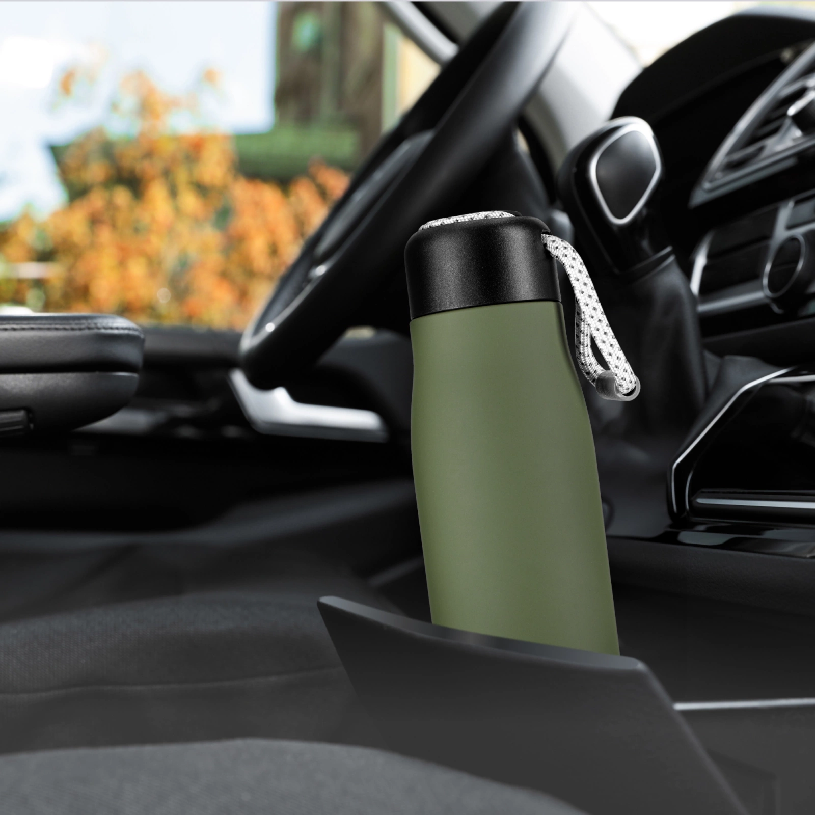 Minimalista dizájnjának és kompakt méretének köszönhetően a palack könnyedén elfér a sporttáskádban, hátizsákodban vagy akár egy nagyobb táskában is. Ergonomikus és csúszásmentes külső bevonata biztos fogást nyújt, erős fém zsinórja pedig megkönnyíti a hordozást és a hátizsákhoz való rögzítést. Vidd magaddal az irodába, edzésre, túrára, vagy egyszerűen csak használd a mindennapi teendőid végzése közben!