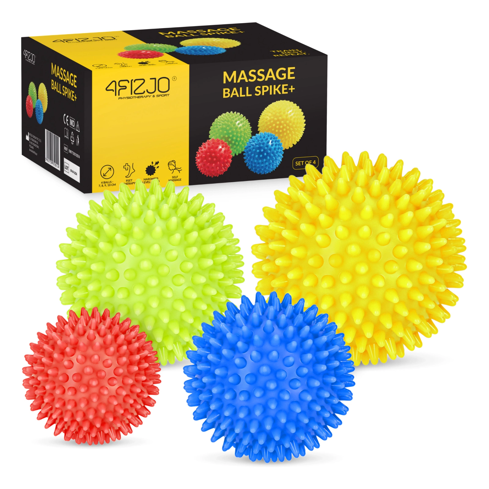 4FIZJO SPIKE+ tüskés masszázslabda készlet, 4 db