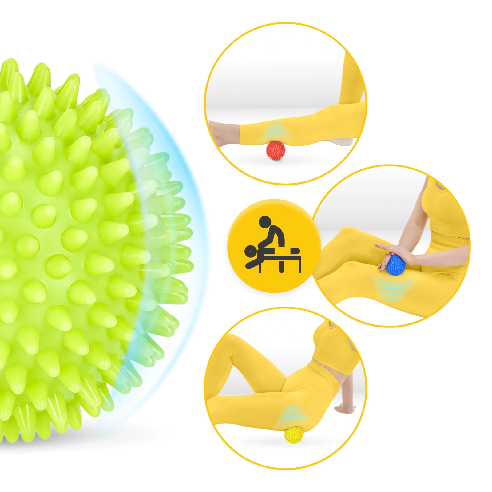Ezek a tüskés masszázslabdák sérüléssel és érzékelési problémákkal küzdő személyek számára ajánlottak. A masszázslabdák segítenek enyhíteni a fájdalmakon és javítani a sérülés utáni mozgásképességen. Ezen kívül támogathatják az izmok regenerálódását és javíthatják a vérkeringést.