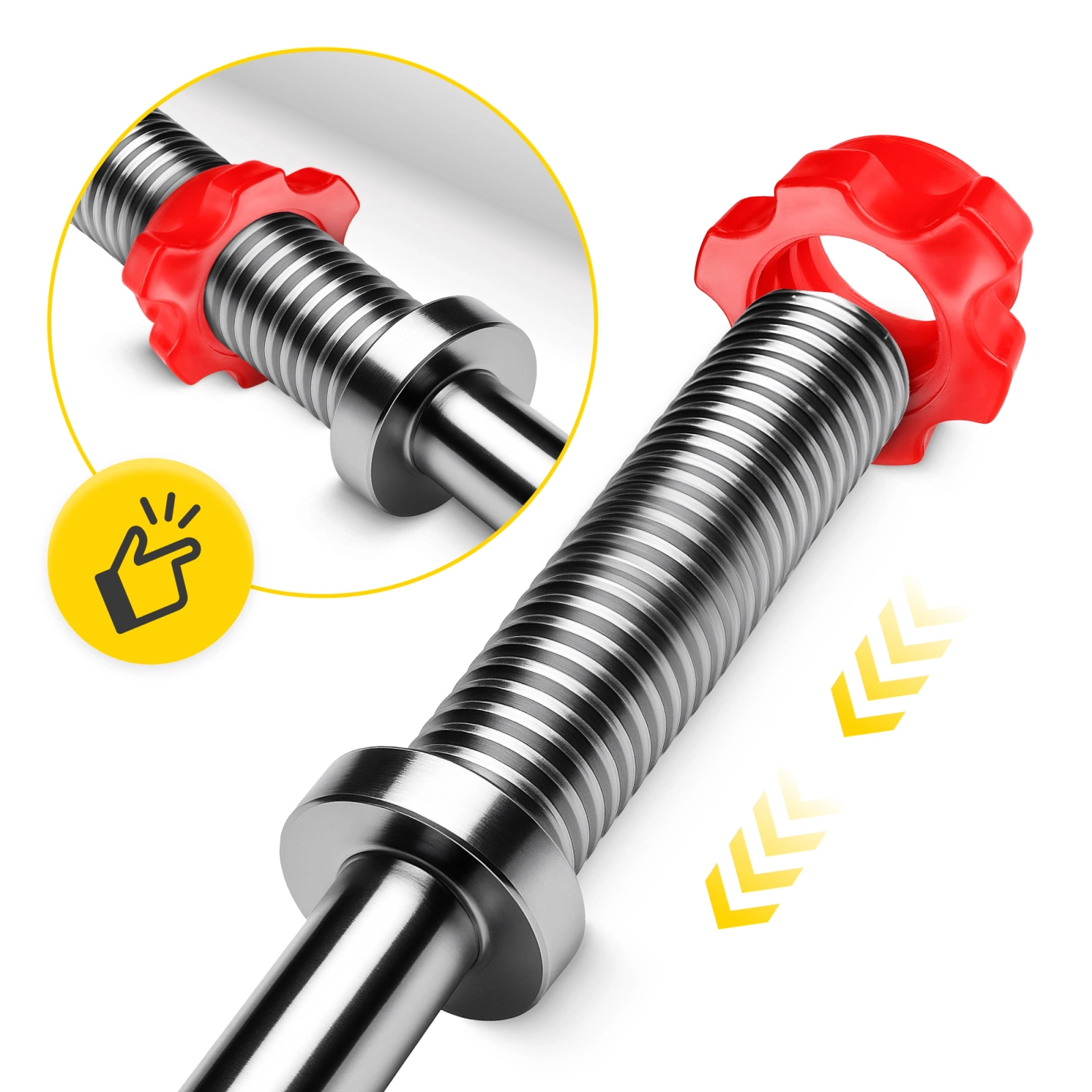 Egyszerűen csavarja rá a csavaros bilincseket a menetes rúdra, és néhány másodperc alatt előkészítheti a súlyzókat az edzéshez.