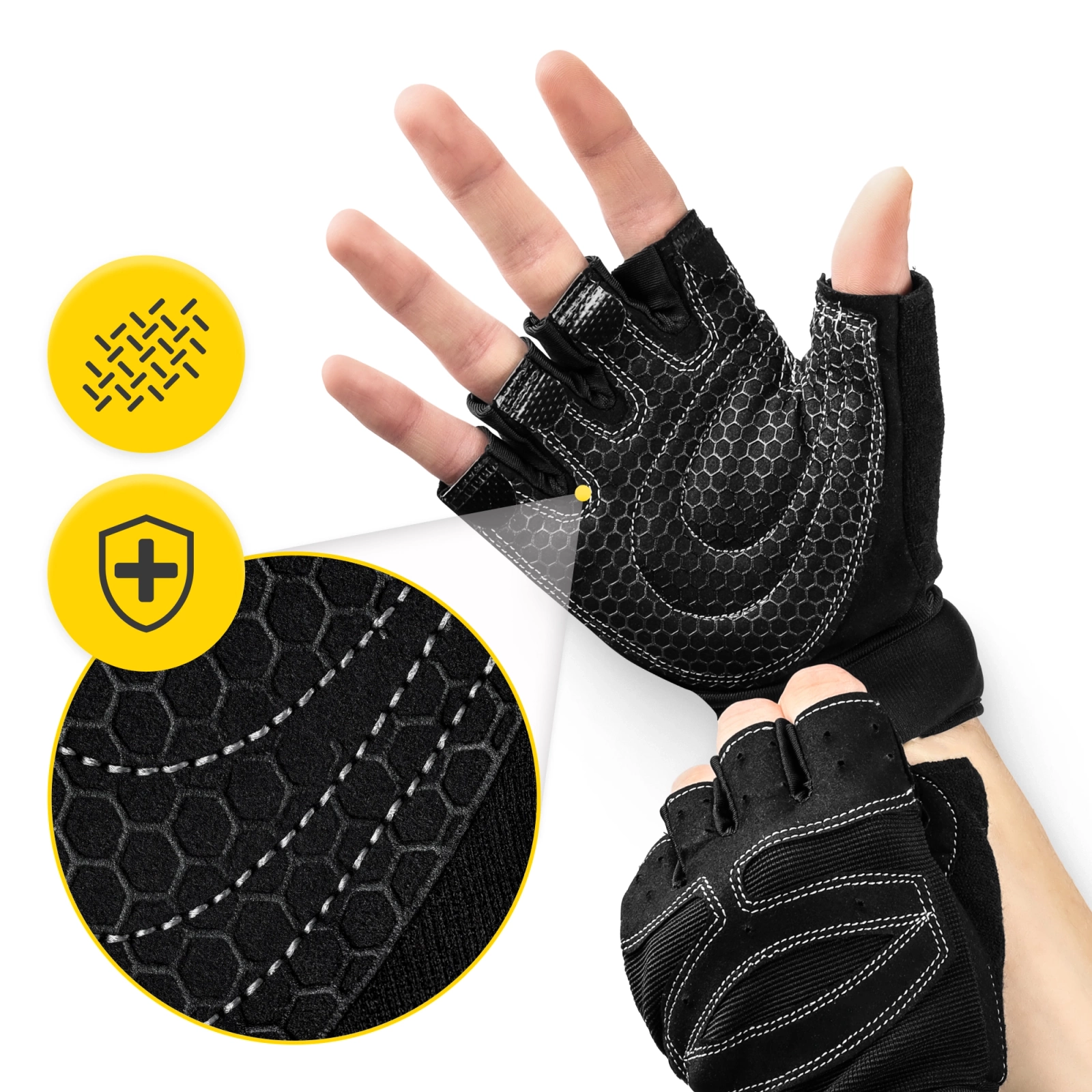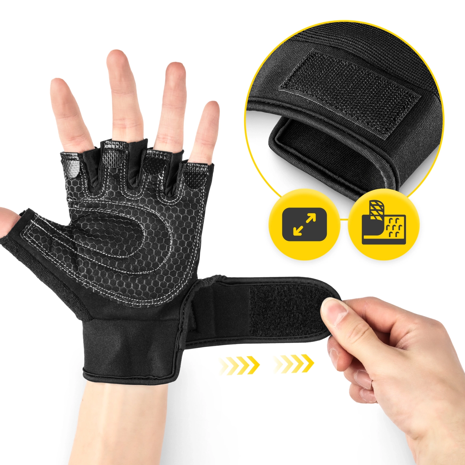 Az edzés alatti biztonság kiemelten fontos. A 4FIZJO ujjatlan fitneszkesztyű használatával nem kell az erőgyakorlatok kockázatai miatt aggódnod: a tépőzáras pánt által biztosított csuklóstabilizálás lehetővé teszi a súlyok biztonságos emelését és a különféle eszközökkel végzett minőségi edzést.