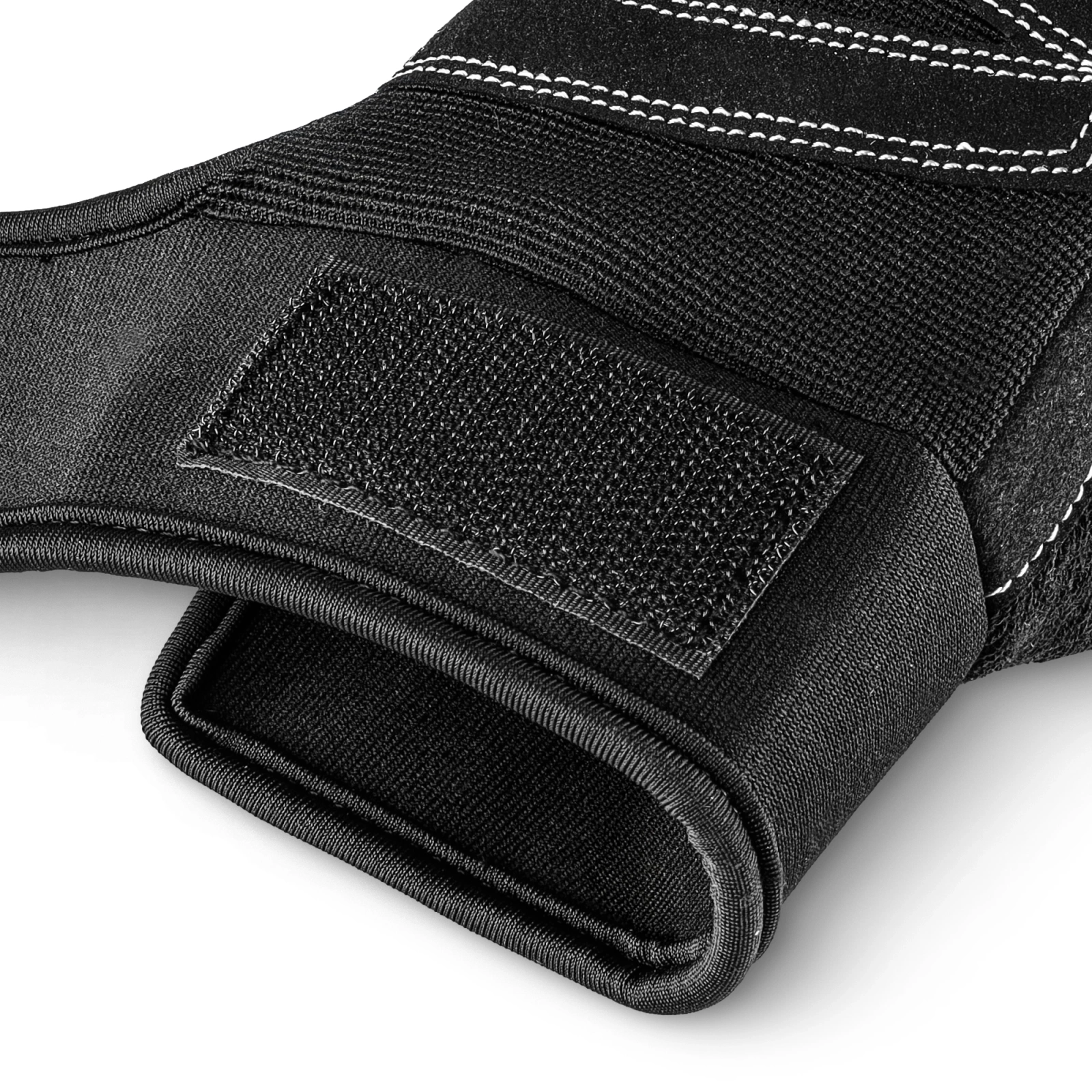 A 4FIZJO edzőkesztyű erős, tépőzáras pánttal rendelkezik, amely stabilan rögzíti a kesztyűt a kézhez. Neki köszönhetően nem kell edzés közben amiatt aggódnod, hogy a kesztyű elcsúszik, így óriási kényelmet nyújt! A pánt emellett jól stabilizálja a csuklót is, ami különösen fontos a súlyzós gyakorlatok – például rúd vagy kézisúlyzó használata – során.