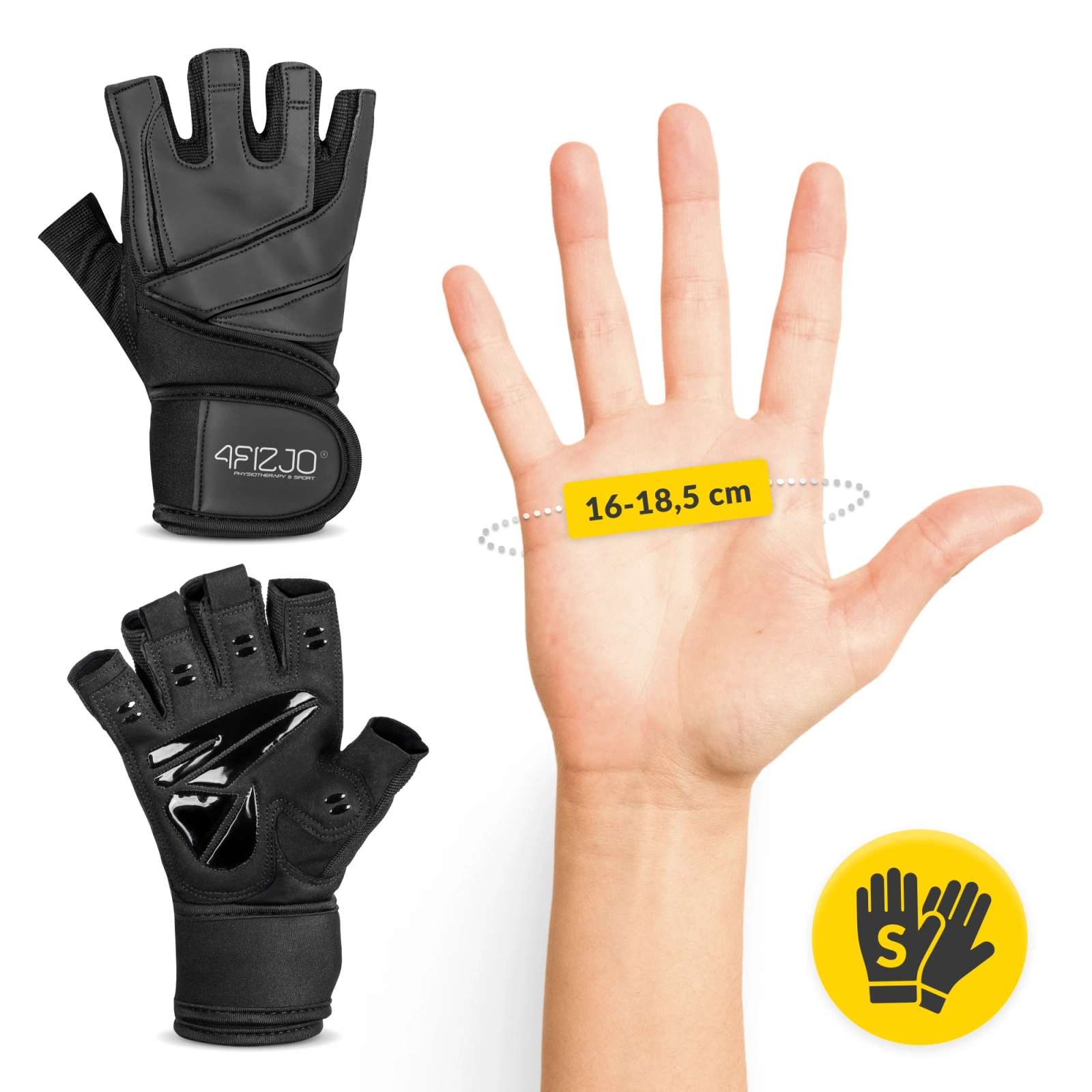 Az S méretű 4FIZJO PRO edzőkesztyű univerzális fekete színben készült, amely mind férfiak, mind nők számára ideális. Emellett a fekete árnyalat könnyen kombinálható a legtöbb sportruhával.