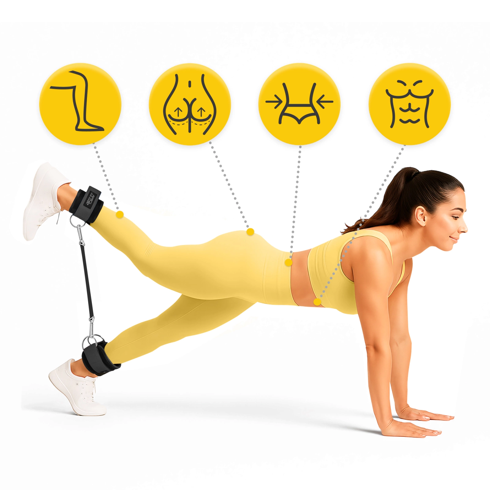 Unod már az edzéseidet? Valami izgalmas változatosságra vágysz a gyakorlatok terén? Próbáld ki a 4FIZJO bokapántot, amely új szintre emeli edzéseid hatékonyságát és teljesítményét! A csigás bokapánt segítségével számos gyakorlatot végezhetsz a lábemeléstől kezdve az oldalemelésen át a láb közelítéséig és távolításáig. Segítségével átformálhatod alakodat, és javíthatsz az általános fizikai állóképességeden.