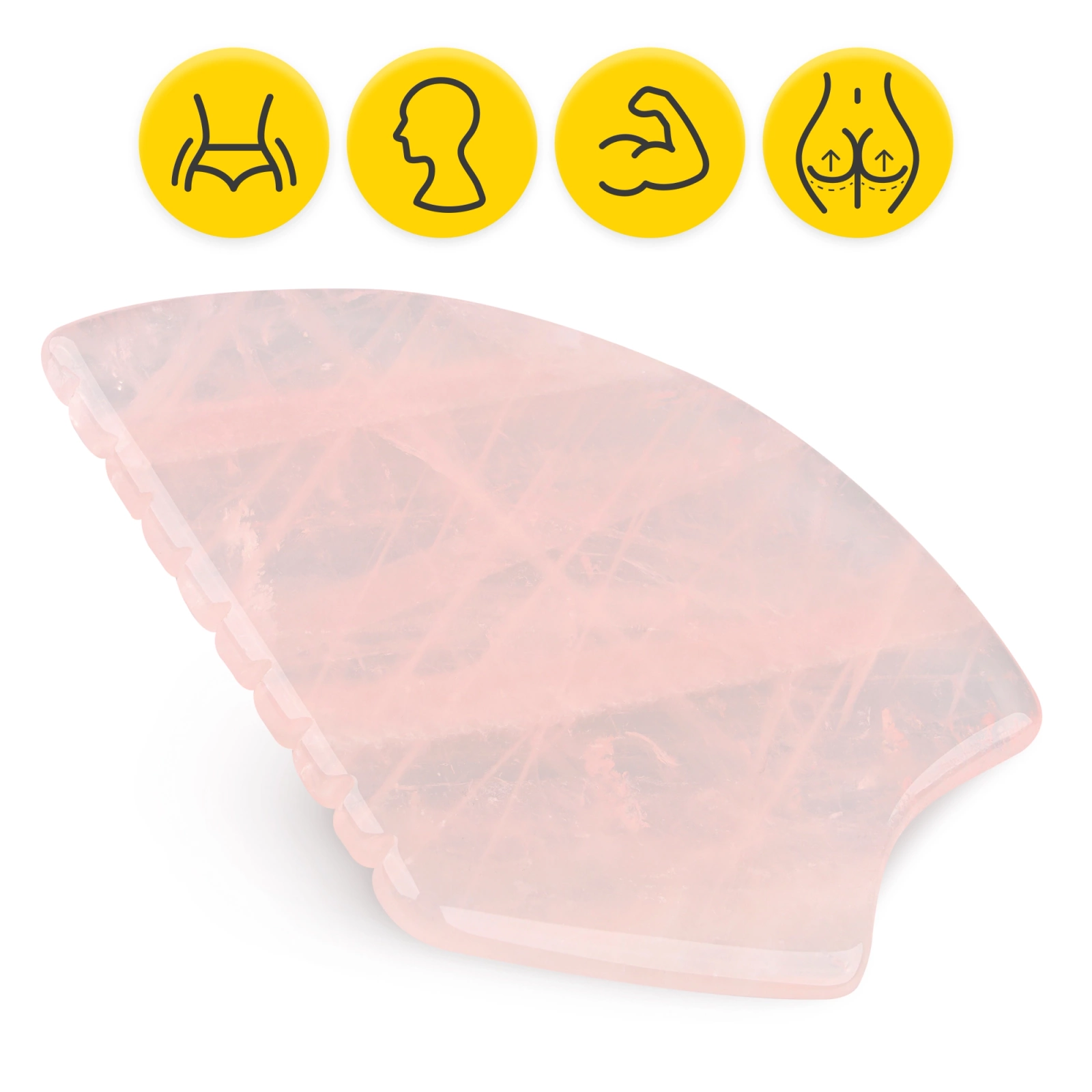 A fogazott szélű rózsakvarc kő, a 4FIZJO, körülbelül 9,5 cm hosszú és körülbelül 7 cm széles. Mérete, amely egy Gua Sha kőhöz képest meglehetősen nagy, azt jelenti, hogy a masszázs során a lemez nagyobb területet fed le, így megkönnyítve és felgyorsítva az egész masszázs folyamatát.