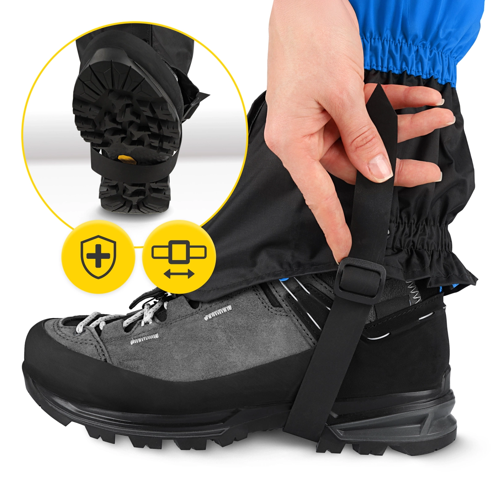A MOUNTAIN GOAT lábszárvédők kiválasztásakor nem kell aggódnia, hogy illeszkednek-e a cipőjéhez. Ez az elasztikus húzózsinóroknak és az állítható pántoknak köszönhető.