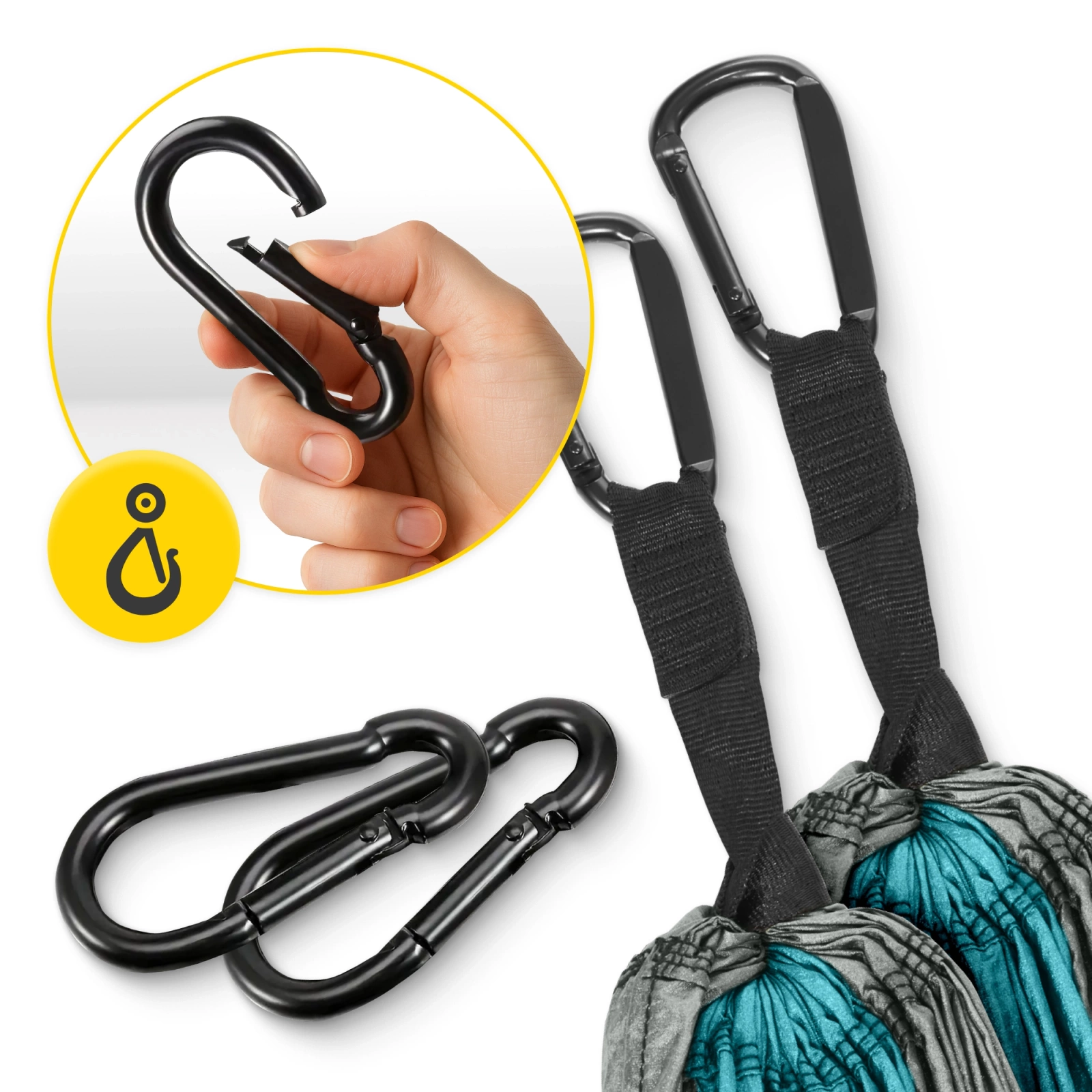Alegând hamacul dublu cu plasă de țânțari MOUNTAIN GOAT, primești un set complet de montaj. Pachetul include benzi de prindere rezistente și carabiniere solide, care îți permit să agăți rapid hamacul aproape oriunde. Astfel, te poți bucura de relaxare confortabilă indiferent de destinația aventurii!