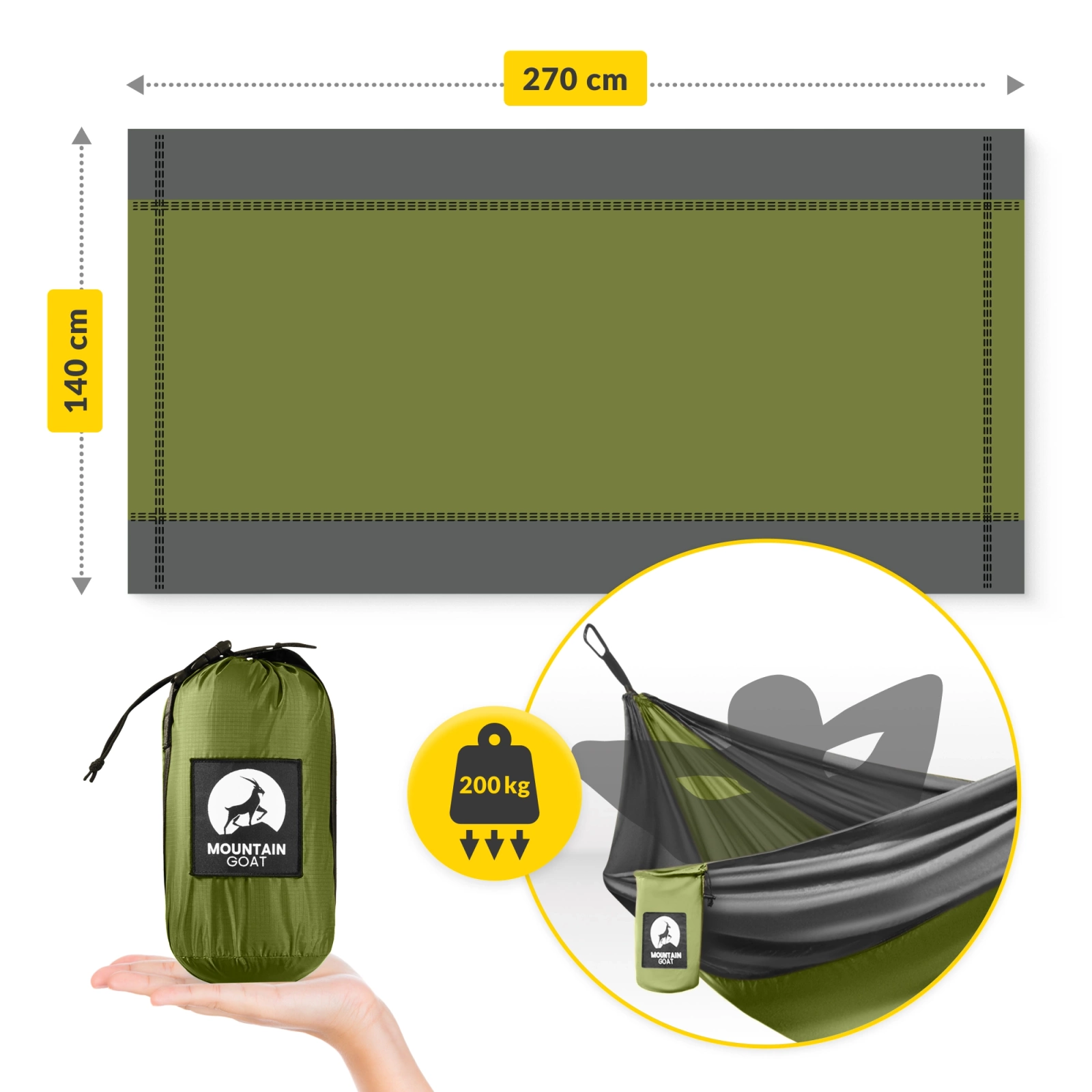 Ha a MOUNTAIN GOAT függőágyat választod, nem kell többé a szálláshely miatt aggódnod a kempingezés vagy túrázás során. A különböző helyeken való alvást a tágas kialakítás biztosítja.