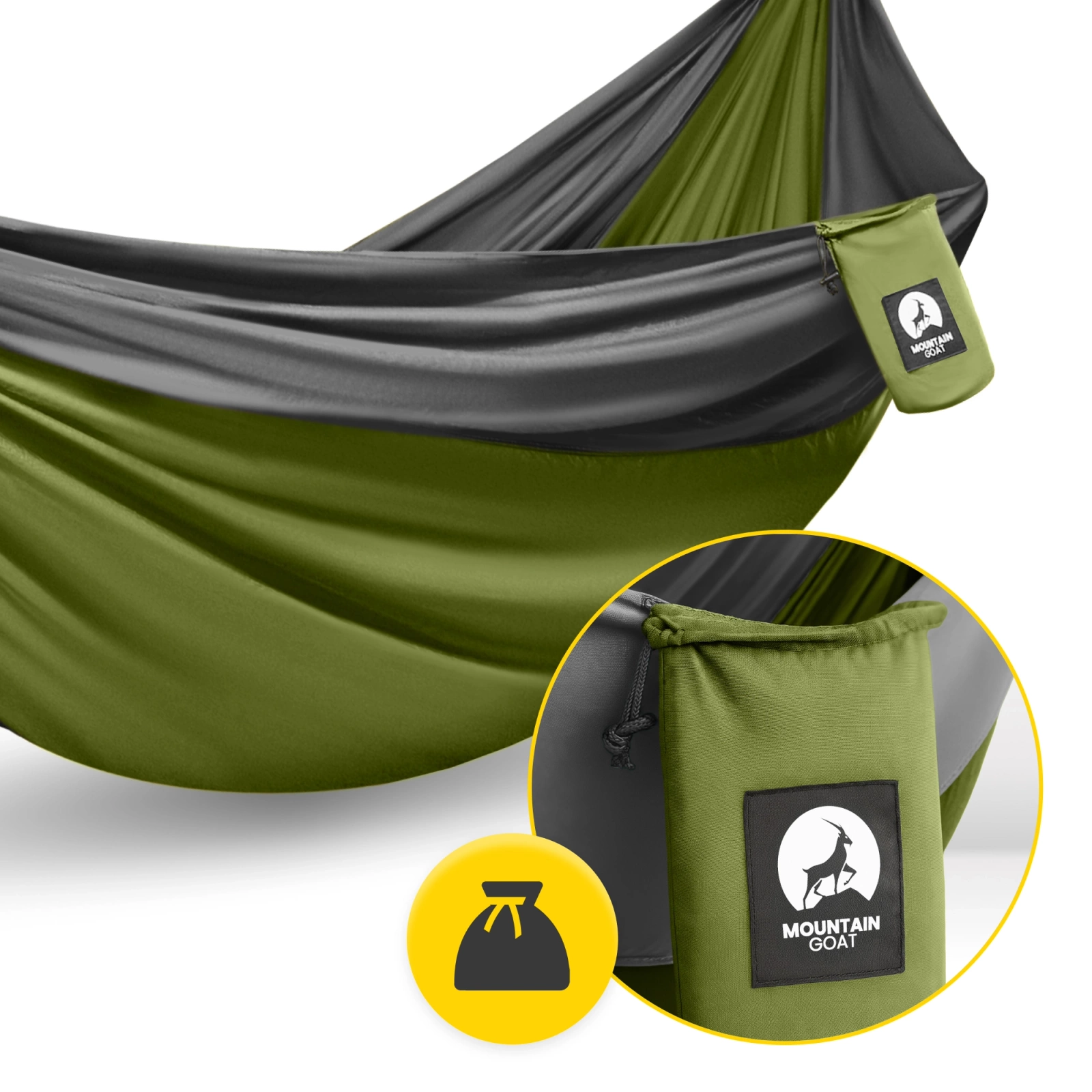 Ha a MOUNTAIN GOAT függőágyat választod, nem kell többé a szálláshely miatt aggódnod a kempingezés vagy a túrázás során. A kényelmes alvást és a nappali pihenést az egyszerű, mégis tágas kialakítás biztosítja.