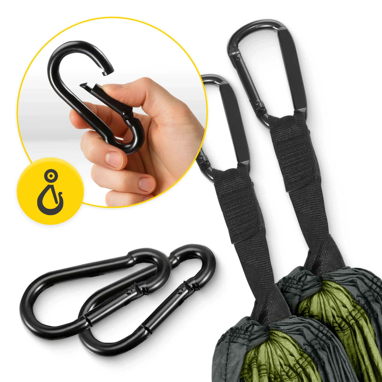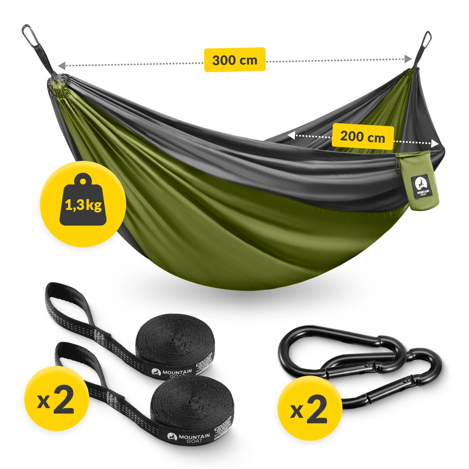 Ha a MOUNTAIN GOAT kétszemélyes függőágyat választod, egy teljes felszerelést kapsz, amely segíteni fog a rögzítésben. A szettben erős rögzítőhevedereket és masszív karabinereket találsz, amelyeknek köszönhetően gyorsan és biztonságosan felakaszthatod a függőágyat szinte bárhova – egy fára, oszlopra vagy bármilyen más stabil pontra. Ennek köszönhetően kényelmes pihenésben lesz részed, bármerre is vezessen az utad!