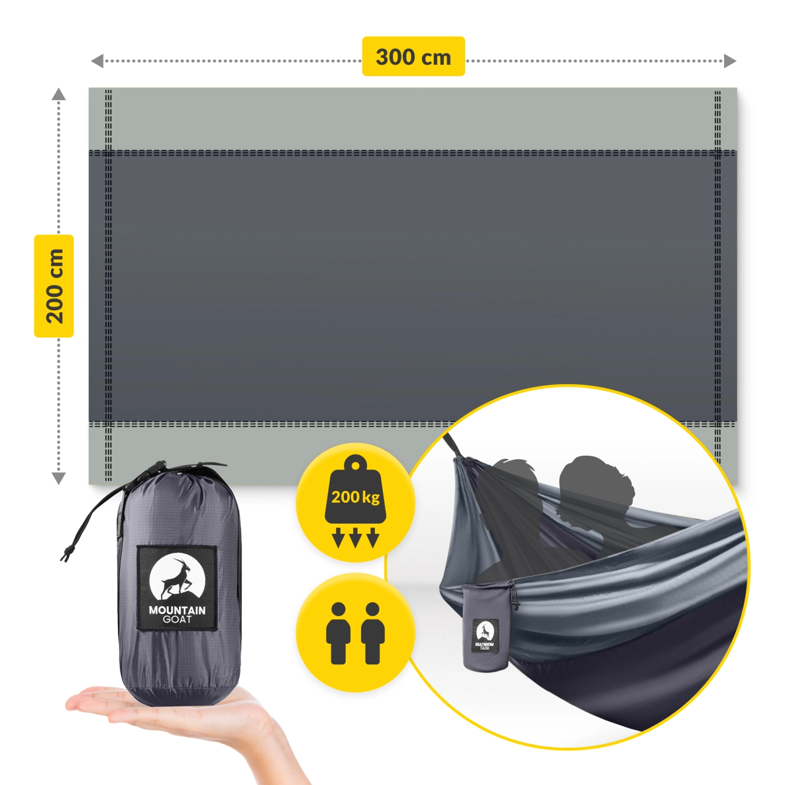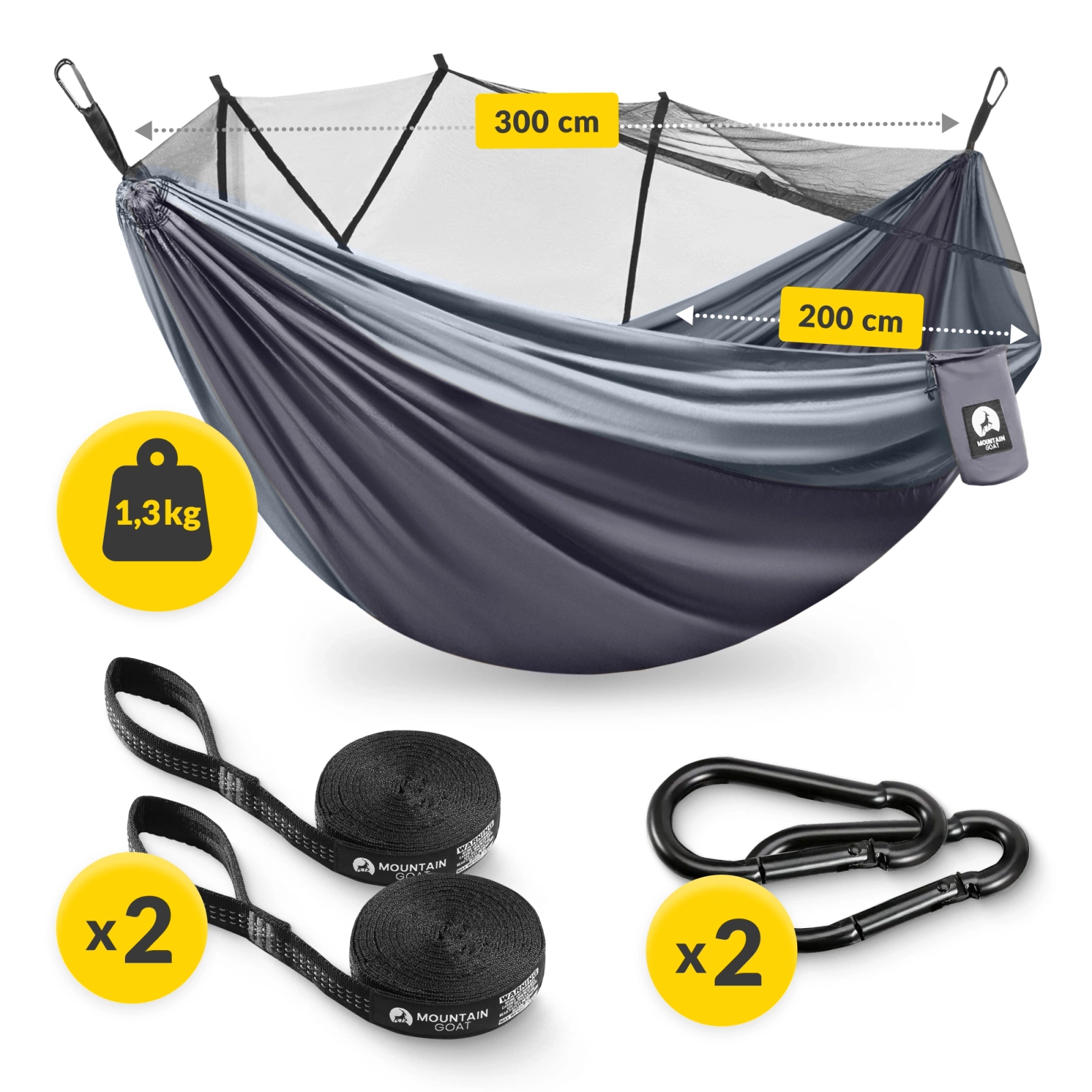 Mountain Goat kétfős utazási függőágy szúnyoghálóval, szürke és grafit