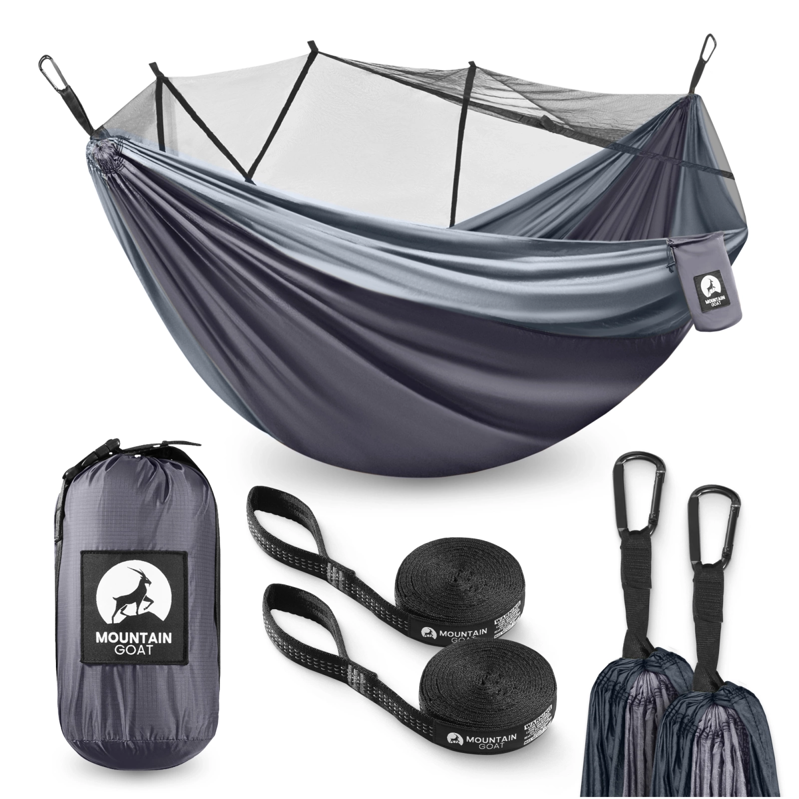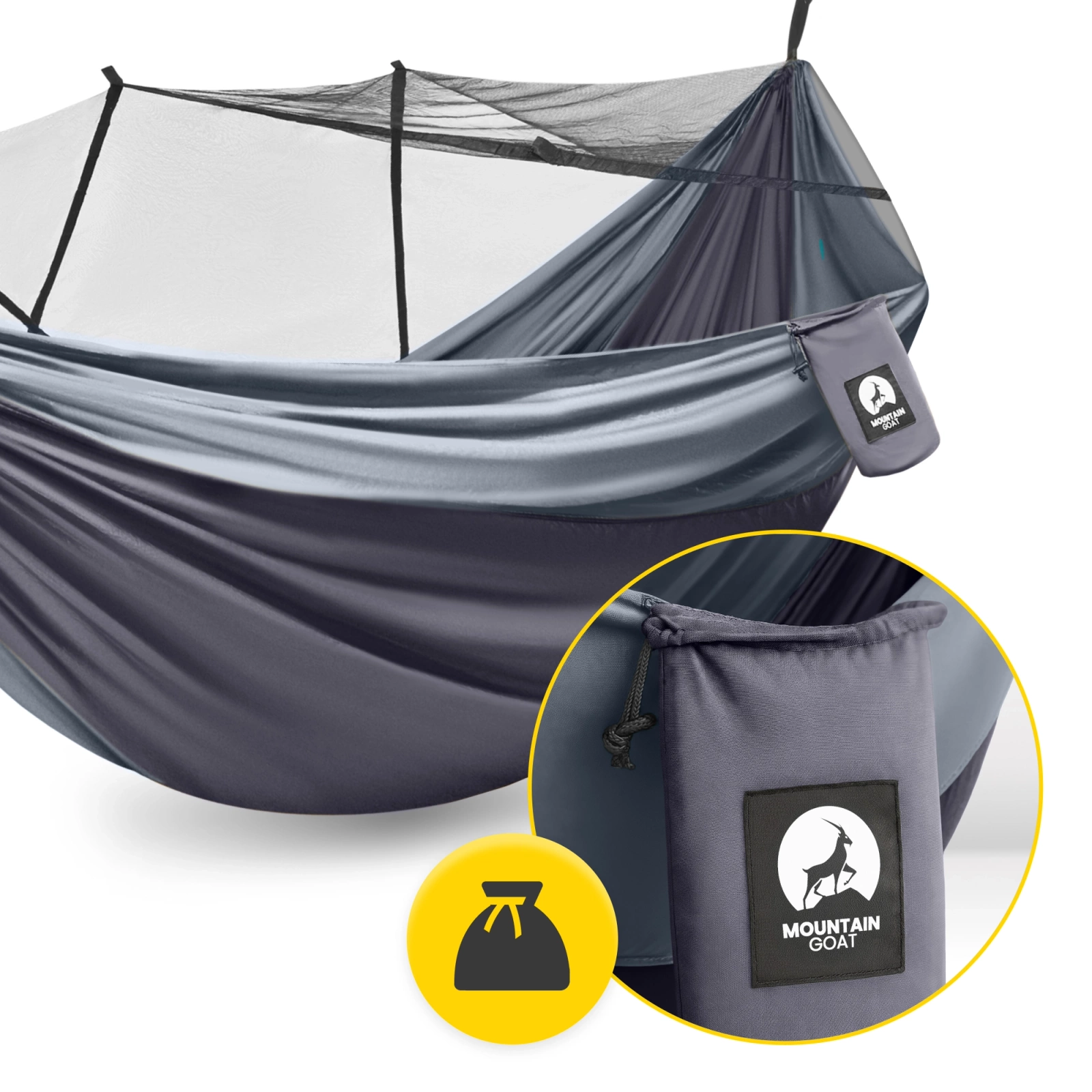 Relaxează-te cu hamacul turistic cu plasă de țânțari MOUNTAIN GOAT pentru două persoane