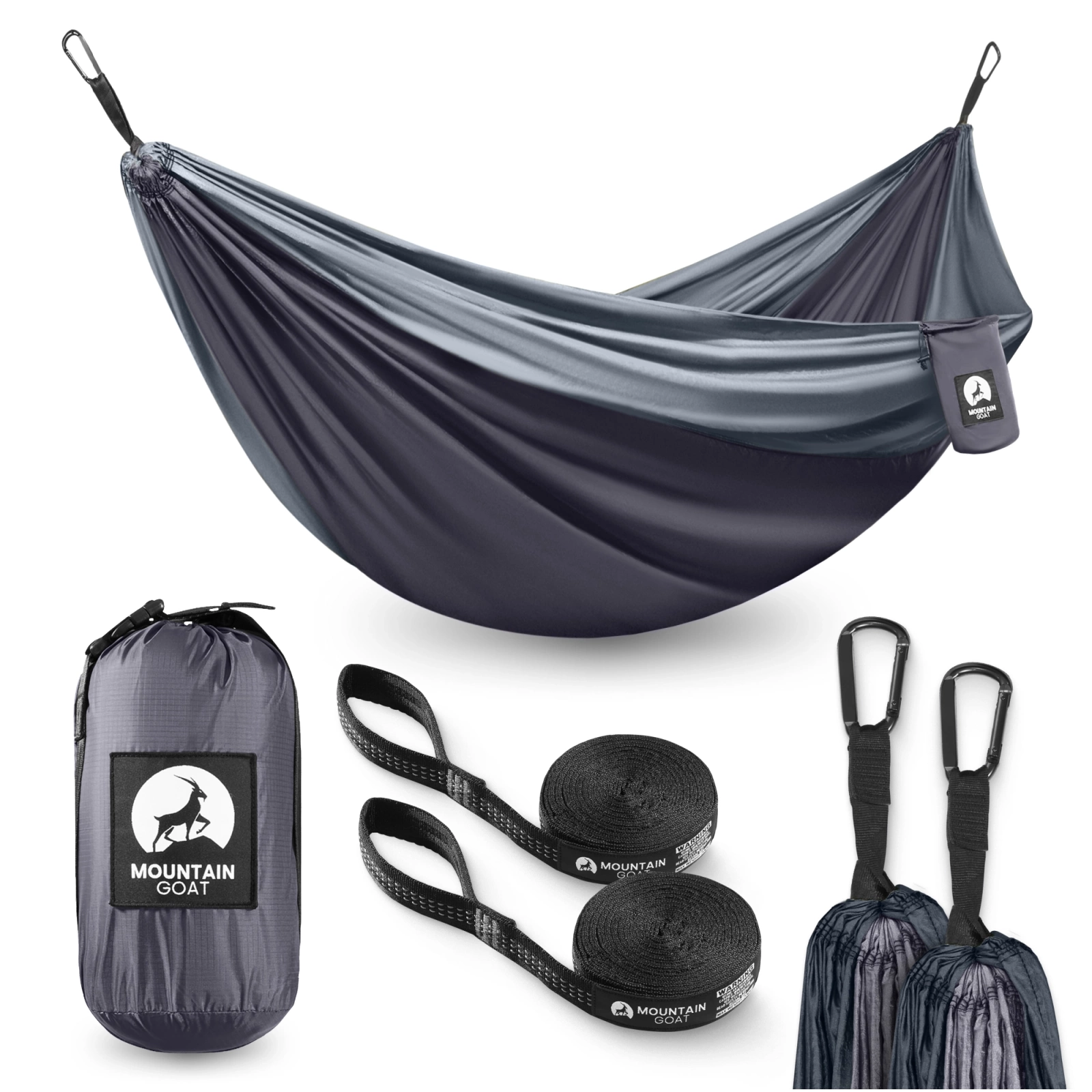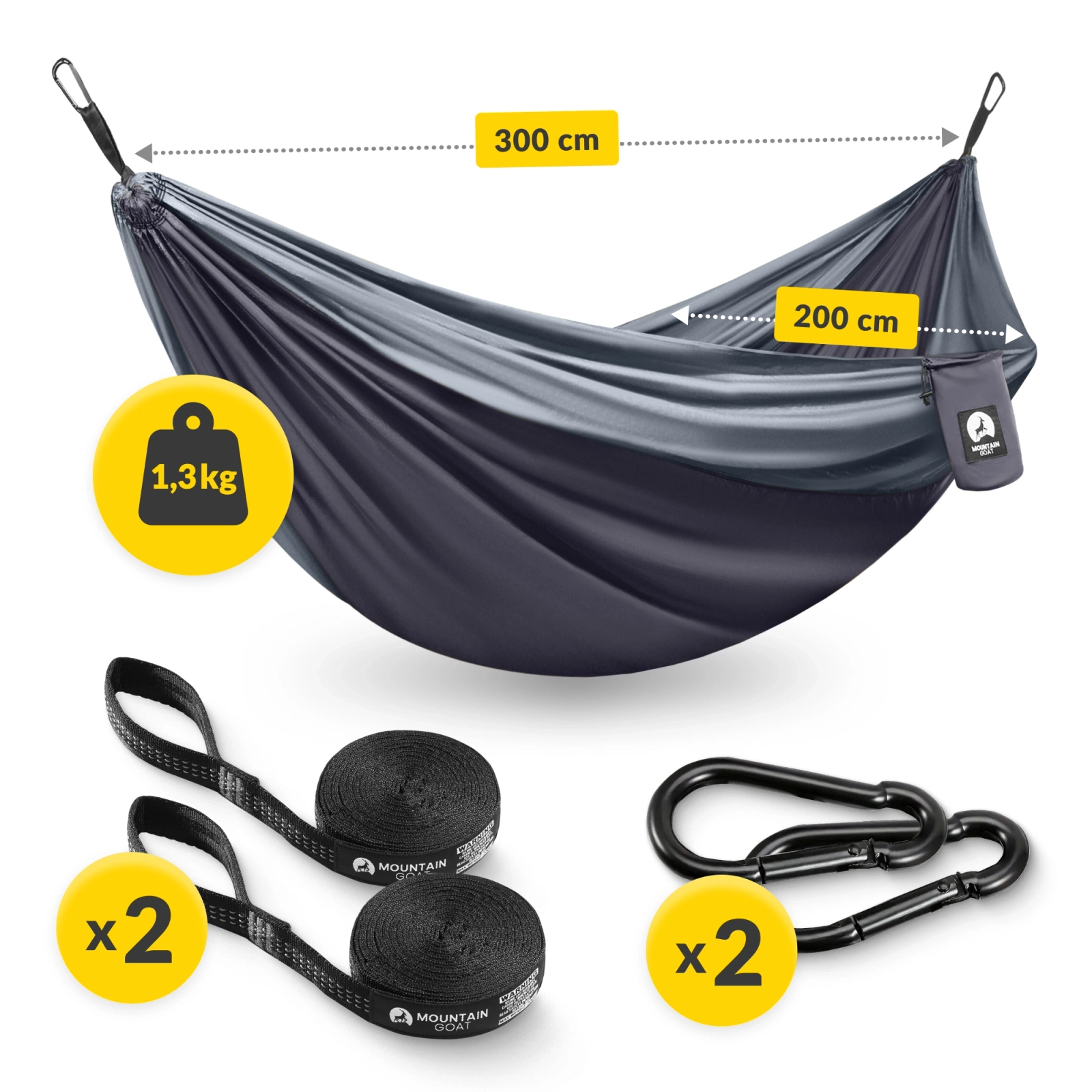 Ha a MOUNTAIN GOAT kétszemélyes függőágyat választod, egy teljes felszerelést kapsz, amely segíteni fog a rögzítésben. A szettben erős rögzítőhevedereket és masszív karabinereket találsz, amelyeknek köszönhetően gyorsan és biztonságosan felakaszthatod a függőágyat szinte bárhova – egy fára, oszlopra vagy bármilyen más stabil pontra. Ennek köszönhetően kényelmes pihenésben lesz részed, bármerre is vezessen az utad!