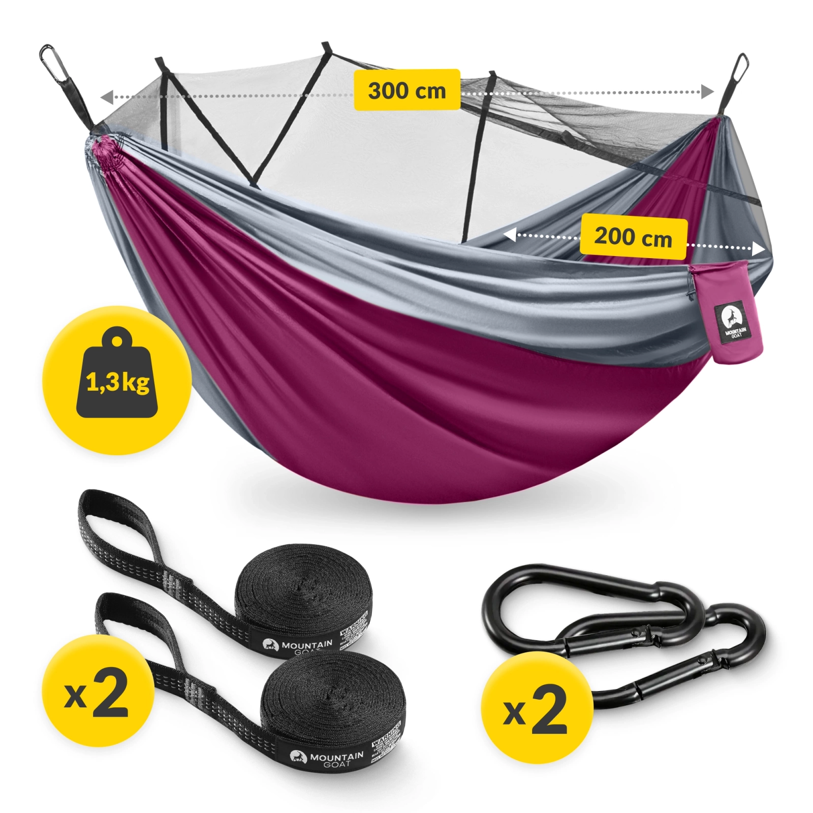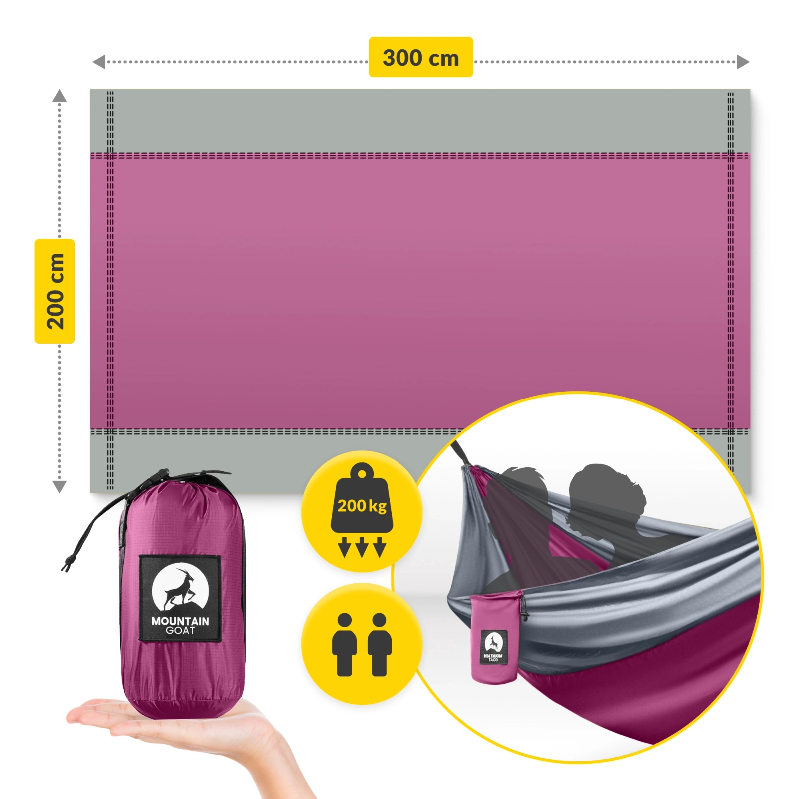 Ha kényelmes kétszemélyes függőágyat keresel, amely minden körülmény között jól teljesít, válaszd a beépített szúnyoghálóval rendelkező MOUNTAIN GOAT modellt, amely hatékony védelmet nyújt a rovarok ellen. A függőágy tökéletesen megfelel utazásra, kempingezésre és hegyi túrára, de kiváló választás lehet a hátsó kertben vagy a közeli parkban is!