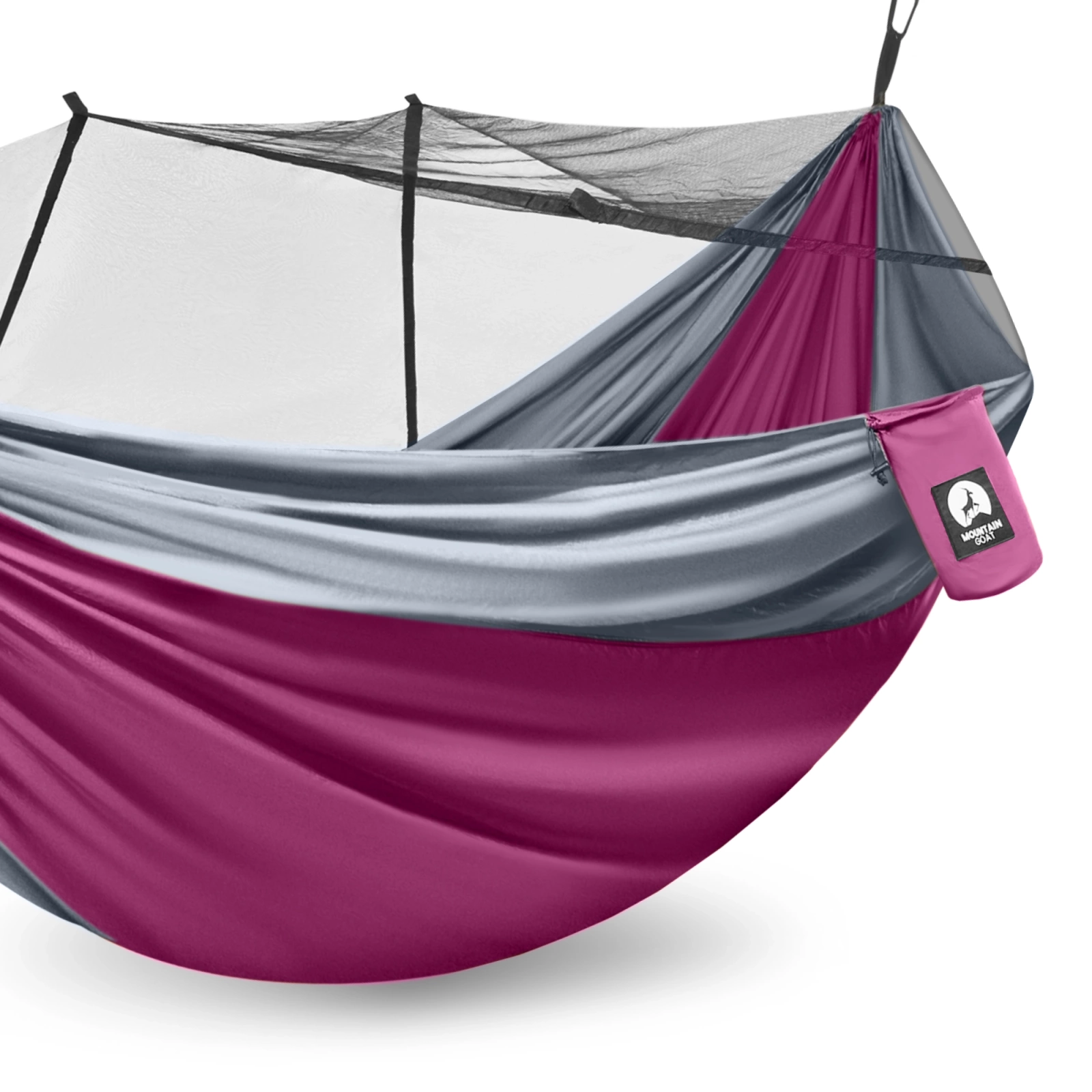 Mountain Goat kétfős utazási függőágy szúnyoghálóval, szürke és rózsaszín