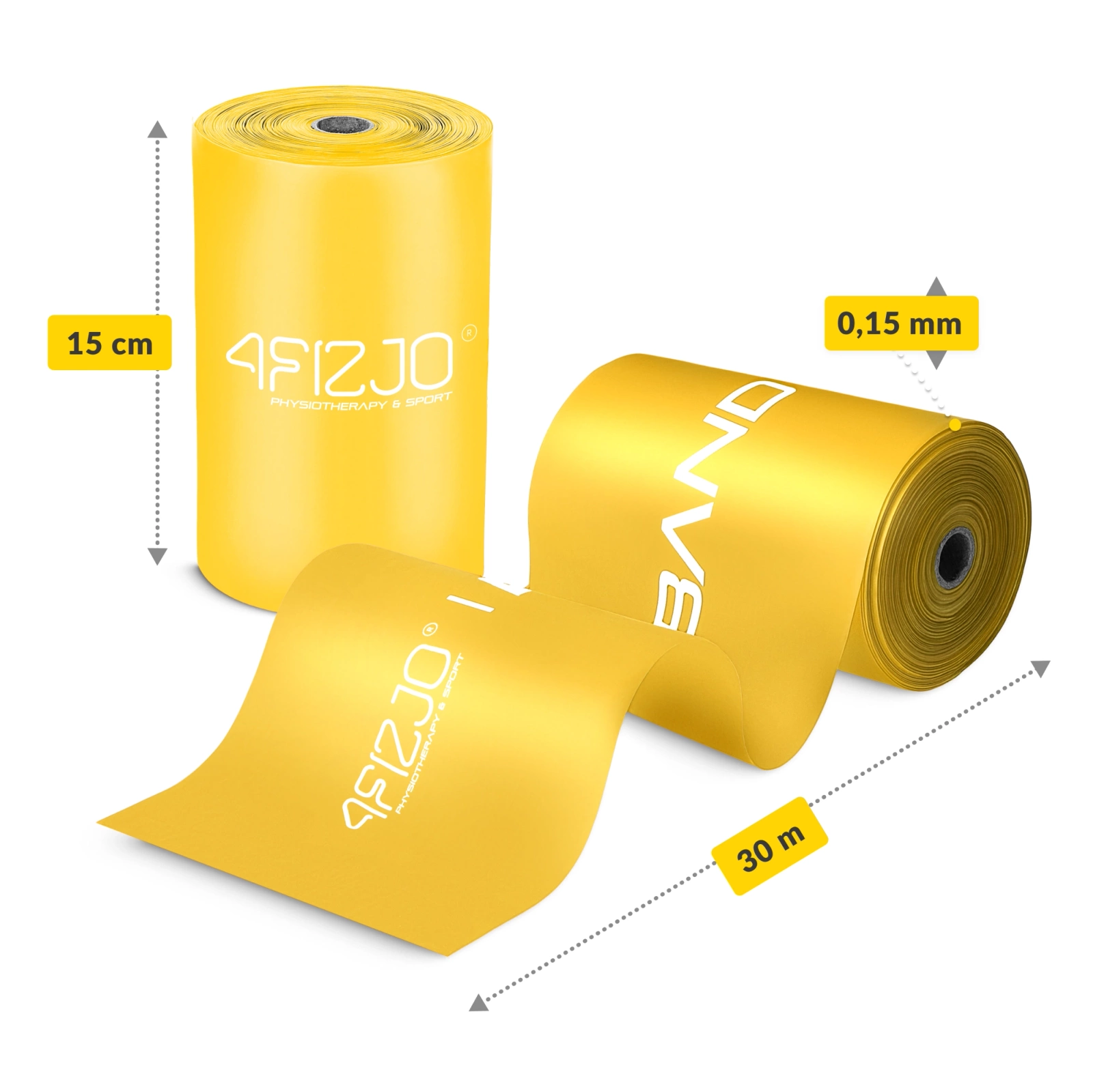 4FIZJO FLAT BAND 30M könnyű ellenállású, rehabilitációs gumiszalag, sárga