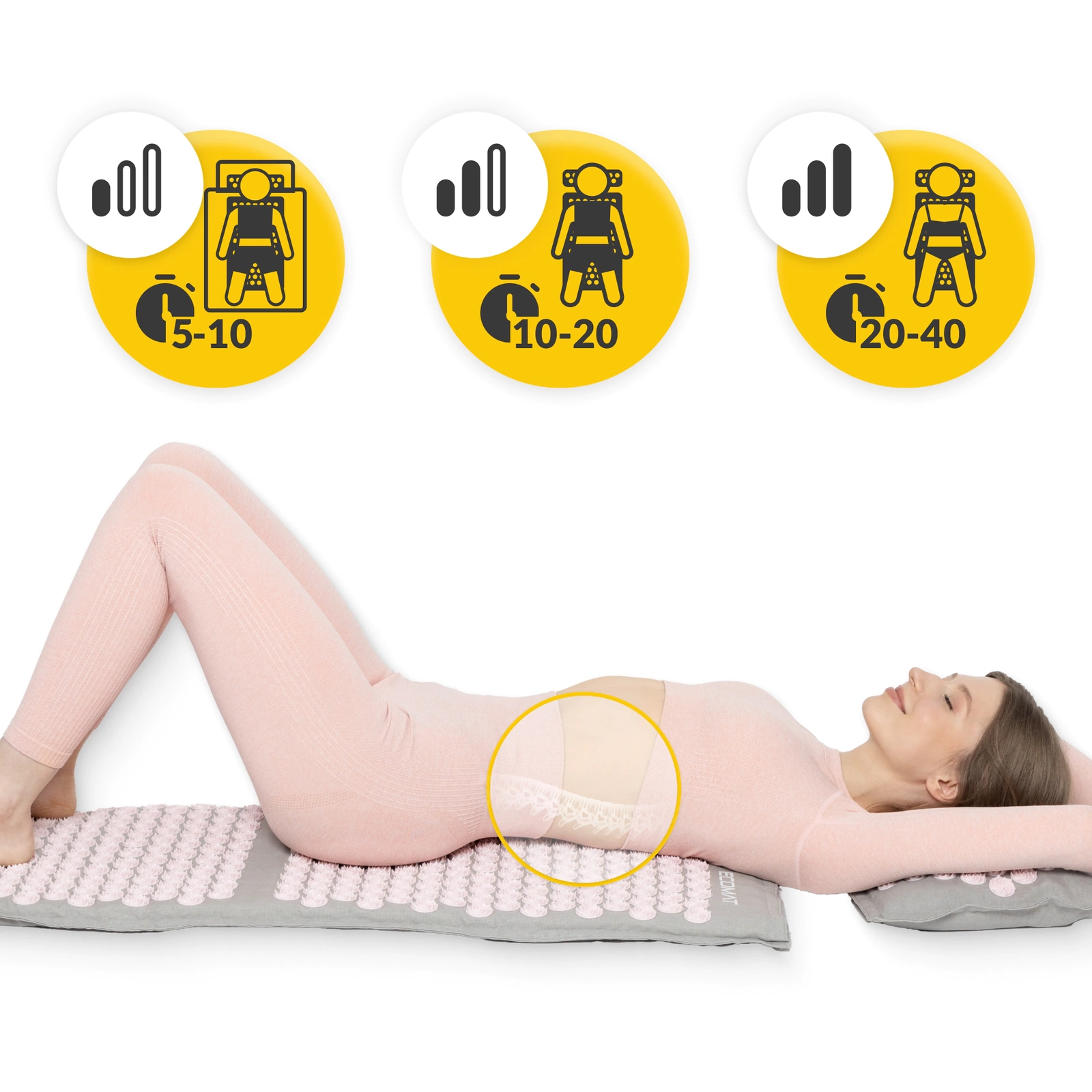A professzionális akupresszúrás szőnyeg és a terápia használata elsősorban a felhasználó fejlettségi szintjétől függ. A szőnyegen végzett masszázs szokásos időtartama 20 és 40 perc között kell, hogy legyen. A következőkre: