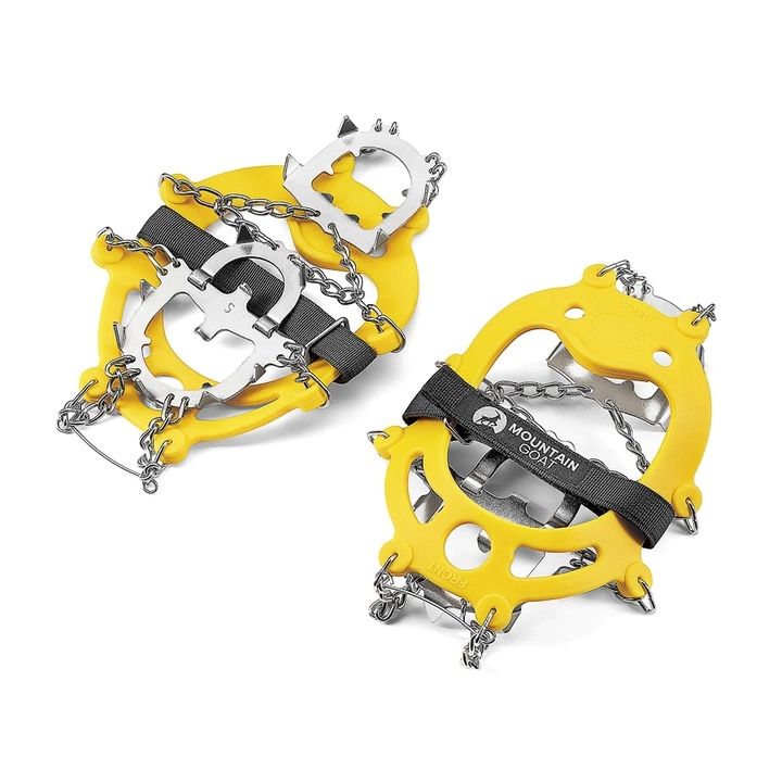 A MOUNTAIN GOATcipőskampók csúcsminőségű trekkingfelszerelések. Ez egy nem nélkülözhetetlen túrafelszerelés, különösen, ha téli szabadtéri kiránduláson gondolkodik a hegyekben. Túrázáskor biztosítja a jó tapadást a csúszós talajon. A jég vagy a fagyott hó nem jelent problémát a professzionális kramponokkal.
