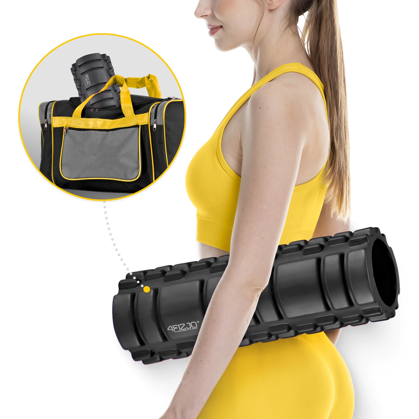 A 4FIZJO hátmasszírozó görgővel segít az izmok és a fasciák ellazításán. Ellenőrizze a termék jellemzőit, hogy a modellt saját igényeihez és a stimulál andó testtájék hoz igazítsa.